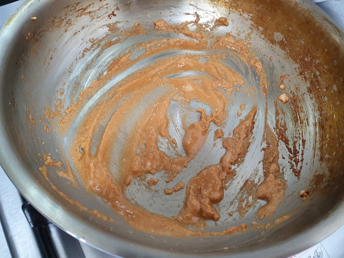 프라이팬을 달군 후 기름을 두르고 밀가루를 볶아줍니다.
