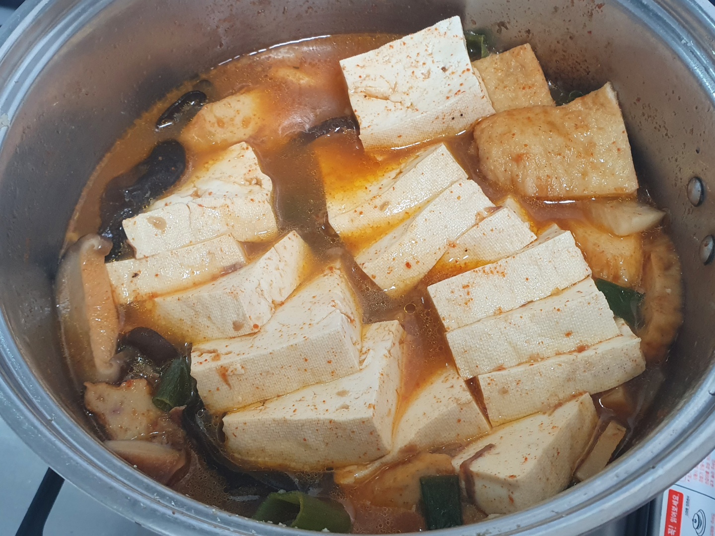 모처럼 좋은 국물도 있고, 냉장고에서 목이버섯과 어묵과 두부가 방치되고 있으니 두부찌개도 합니다.