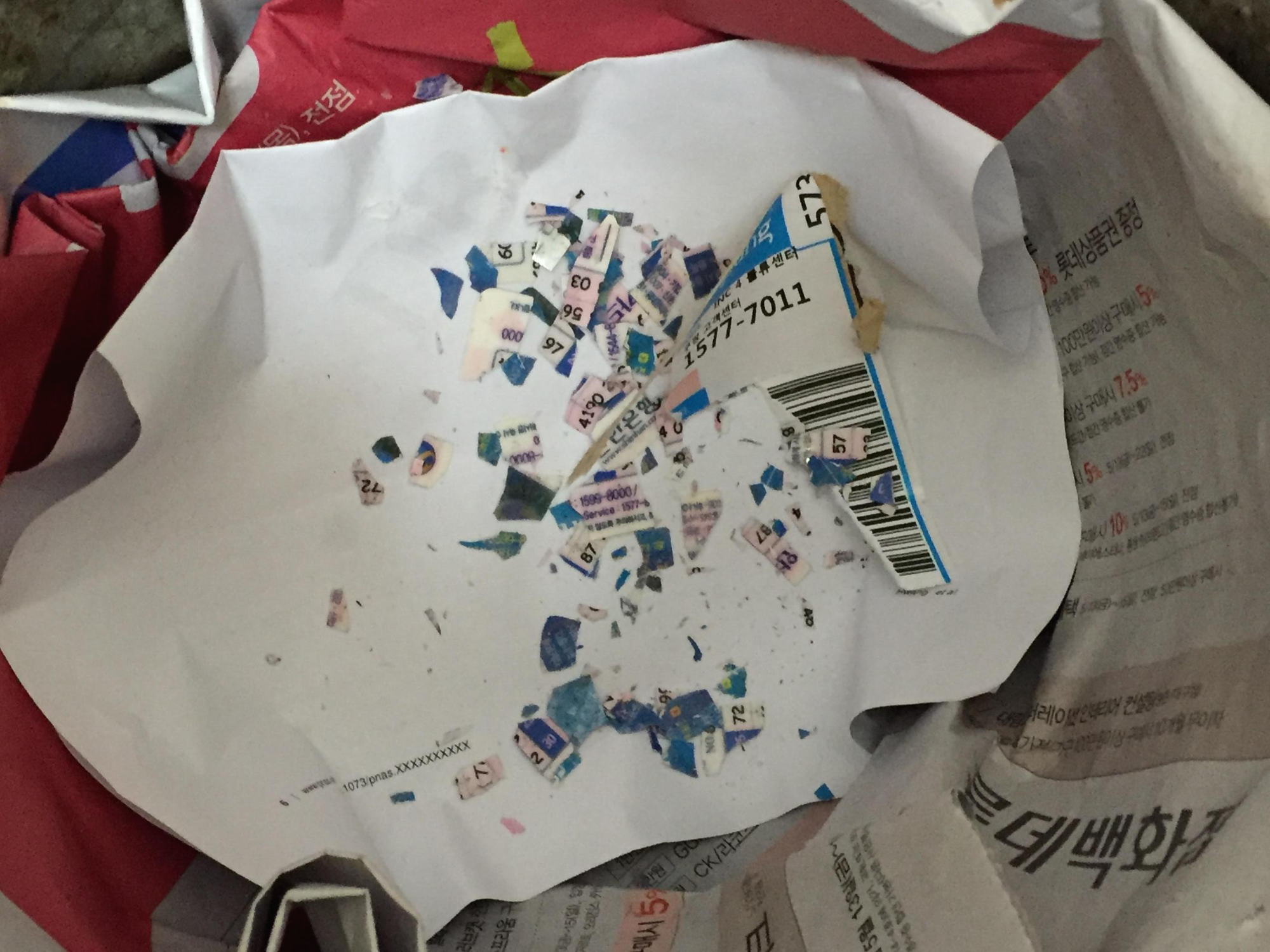 보안카드를 지갑에 5년정도 방치했더니 저렇게 다 부서져버렸습니다. 훌륭한 보안매체네요.