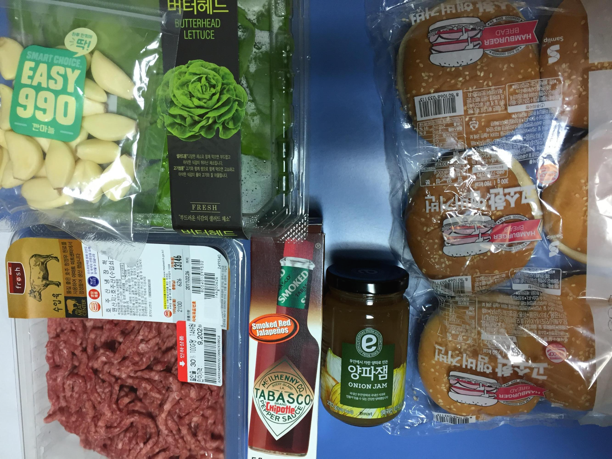 아마도 출장갔다가 타바스코 치폴레 발견하고 사와서 햄버거 만들었던 것 같습니다. 당시에 같이 일하던 분이 치폴레 좋아하는데, 한국에서 구하기 어렵다고 하셔서 선물로 사는김에 더 샀던 것 같네요.
