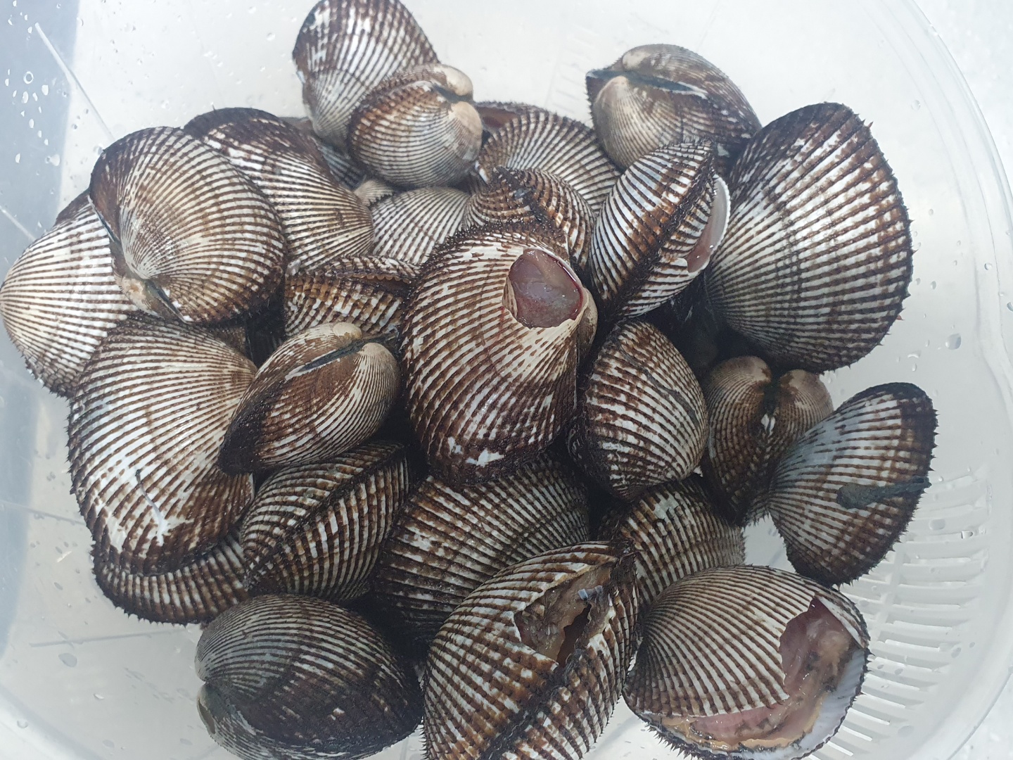 꼬막 하고 생긴 건 비슷한데, 크기는 훨씬 큽니다. 피꼬막이라고 부르기도 합니다. 껍데기가 약하고, 관자에 힘이 없습니다. 이런 부실한 생명체가 어떻게 이렇게 크게 자랐는지 신기합니다. 바닷속 깊은 곳 갯벌에 사는 거로 알고 있는데, 개흙이 많이 묻어있습니다. 껍데기 안에도 개흙이 들어있는 놈들도 있습니다.