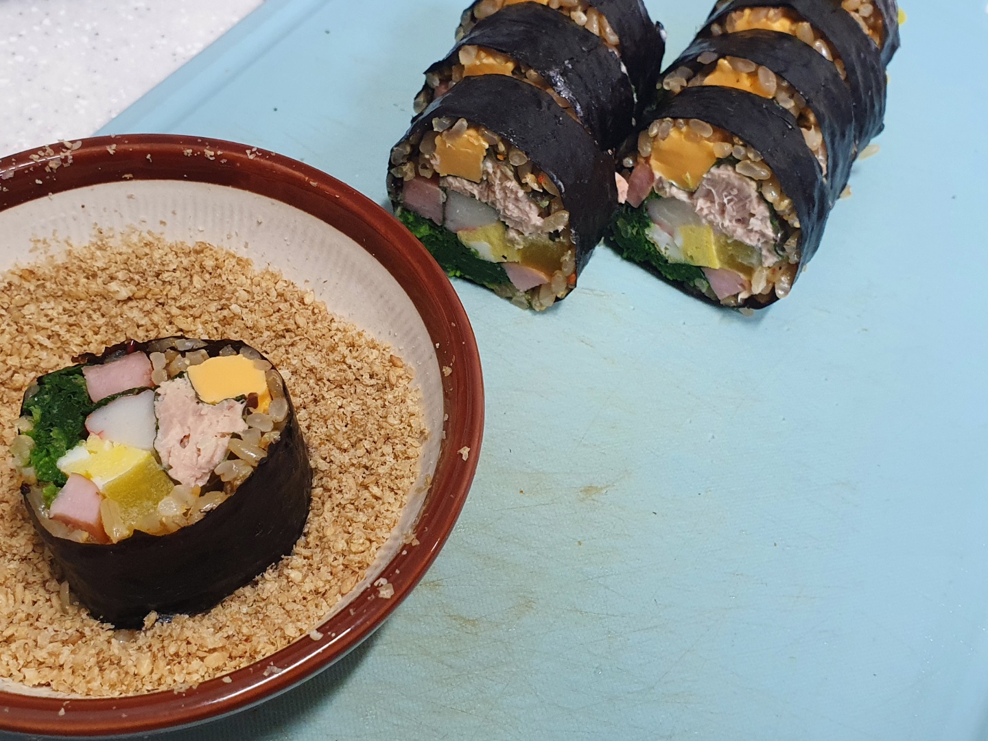 김밥을 썰다 보면 김 끝부분이 이 제대로 칼로 안 잘려서 풀려버리는 것인데, 이걸 방지하는 방법이 있습니다.