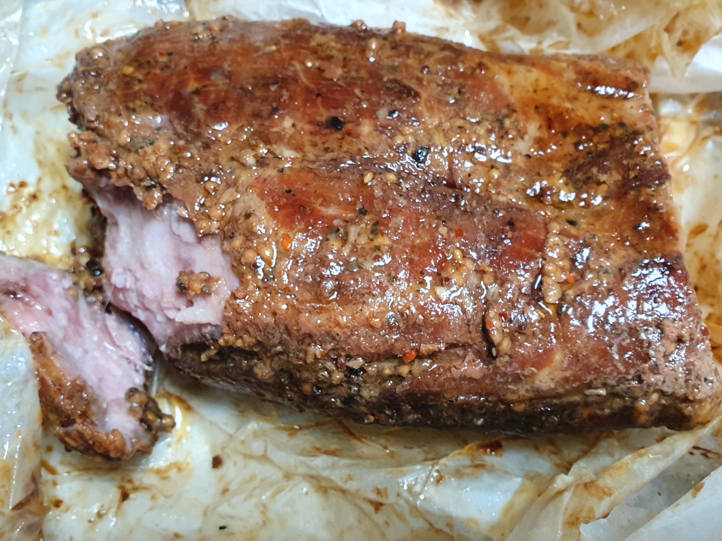 최근에 너무 브리스킷, 풀드 포크, 로스트 치킨 같은 오래 익히는 고기 요리만 하다 보니, 그냥 구운 고기가 먹고 싶어 졌습니다. 그래서 인터넷에서 듀록 냉동 목살 (2kg)을 구매해서 잘라서 프라이팬에 구워 먹었는데, 생각보다 질겼습니다. 인생이 늘 원하는 대로 되는 것은 아니죠. 로스트비프 같은 스타일로 낮은 온도에서 서서히 익혀보면 부드러울까 해서 오븐에 구워봤습니다.