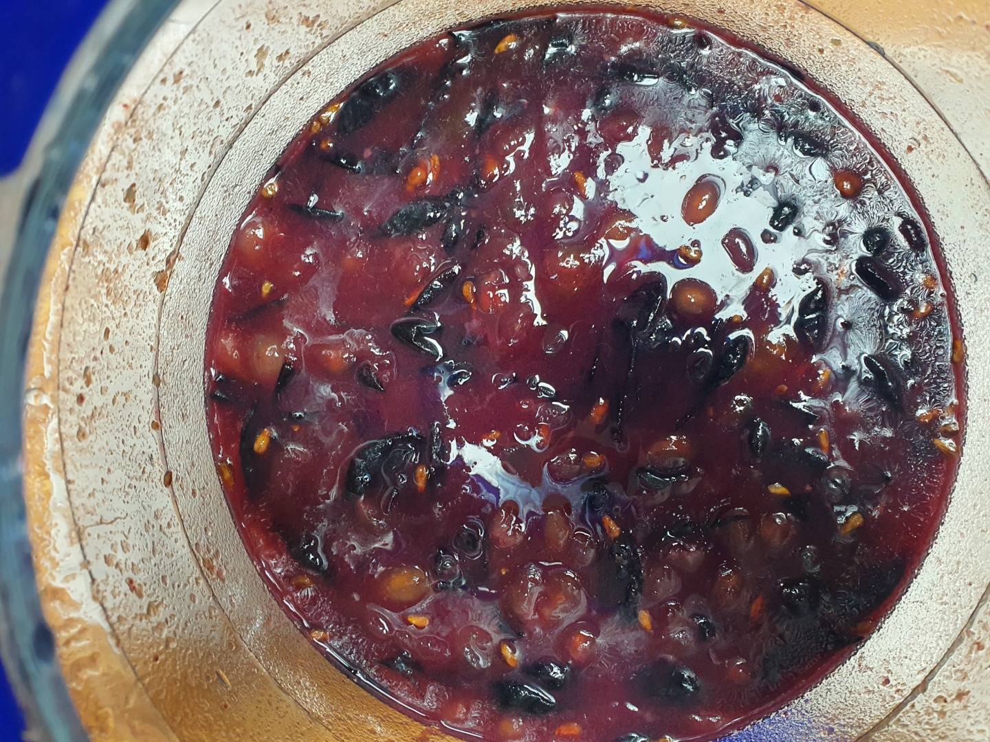 뚜껑을 덮고, 하루정도 방치합니다. 포도 알갱이가 삭아버릴거고, 자연적으로 알콜 발효가 일어납니다.