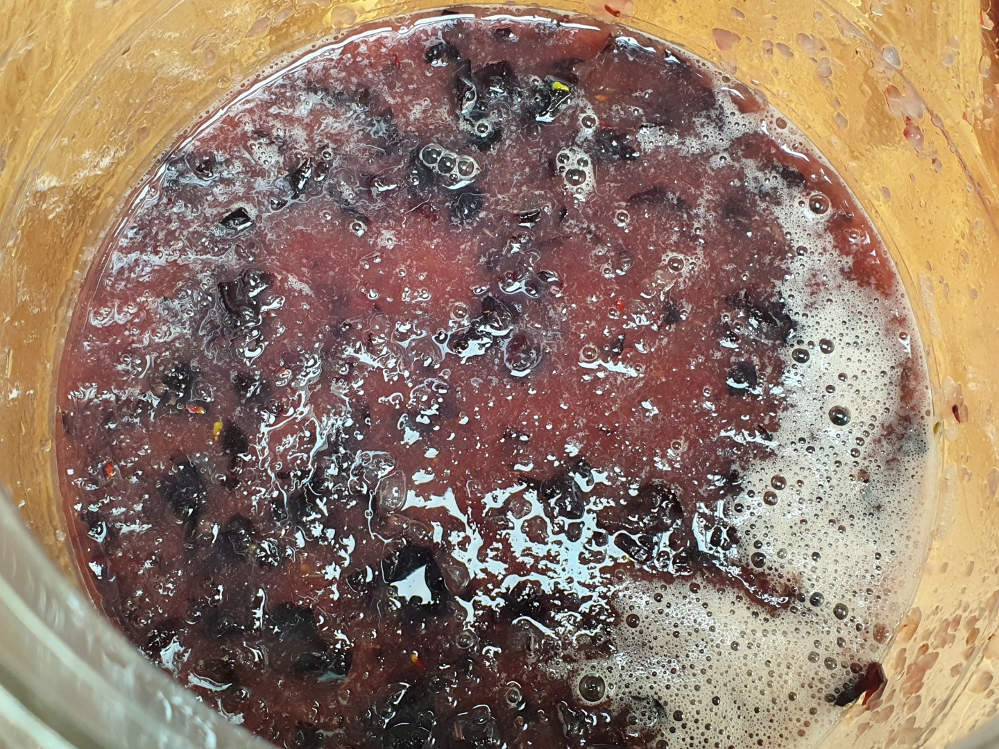 이스트를 넣고 추가로 발효시켜주면 탄산이 생기면서 스파클링 와인이 되는데, 이번엔 직장에서 마시려고 알코올 발효를 진행하지 않았습니다.