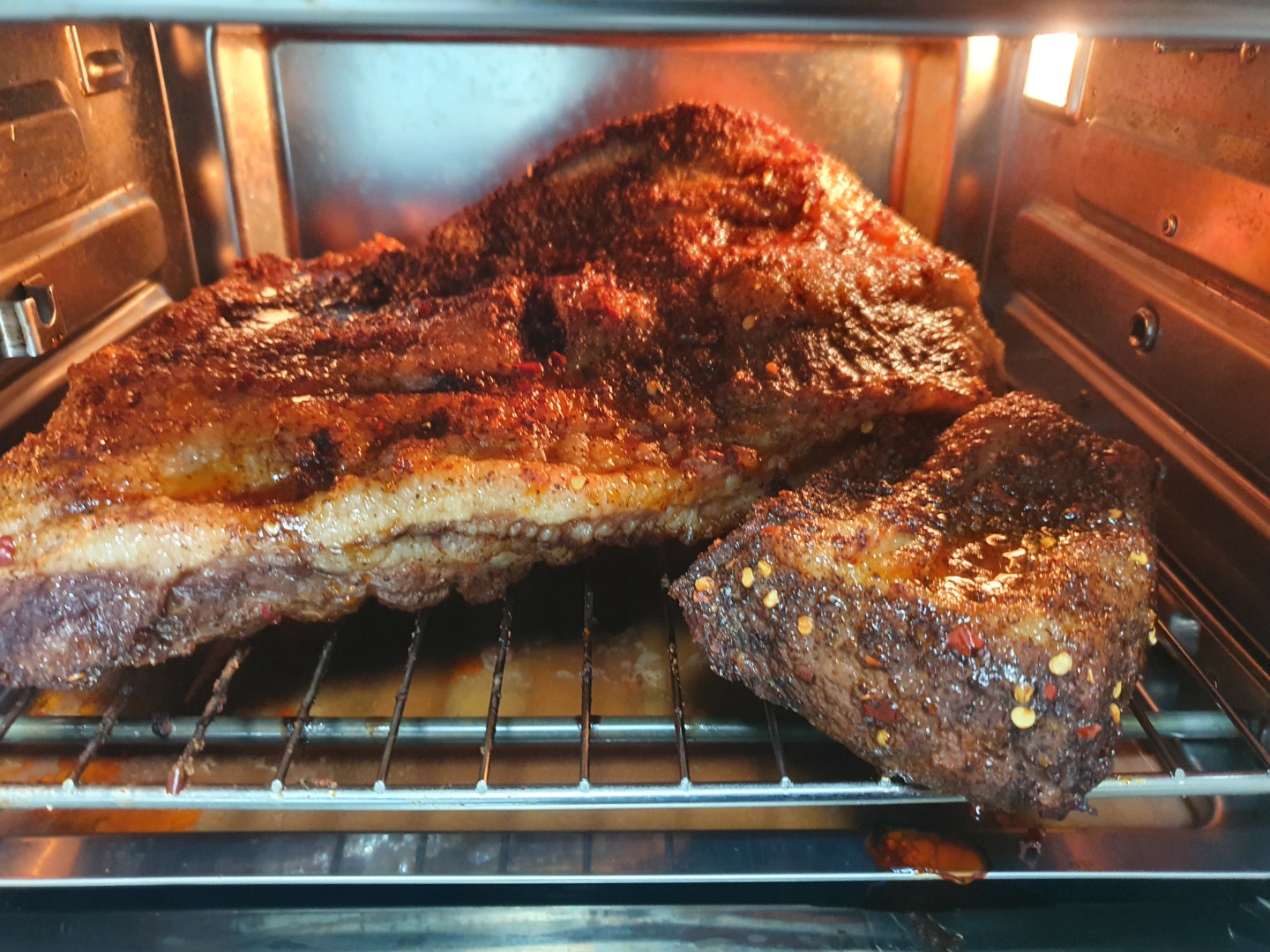 양지는 아무래도 더 강한 열로 오래 익혀야 부드러워지는데, 오븐이 작다 보니 차돌은 상대적으로 열선에 가까워서 온도를 더 올리면 수분이 과도하게 날아가버립니다. 좀 더 큰 오븐이 필요한가...