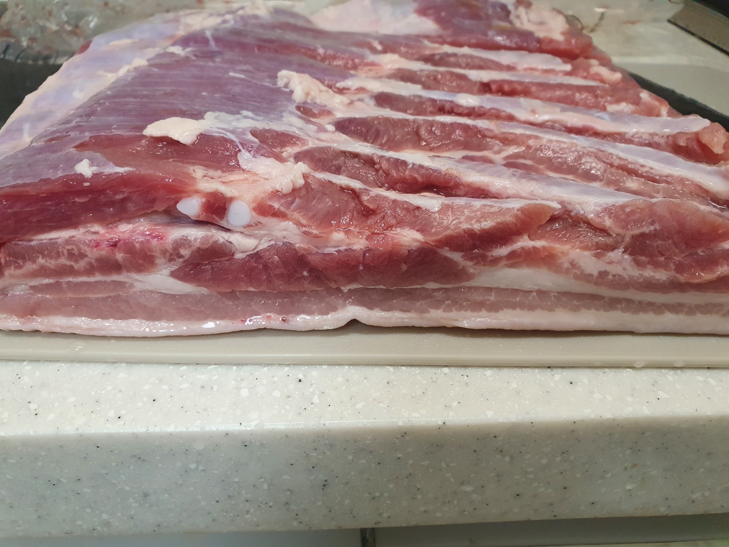 동파육과 풀드포크를 만들려고 돼지 삼겹살 4kg를 샀습니다. 박피를 안 한 미박 삼겹살이니 오겹살이라 불러야 할까요?