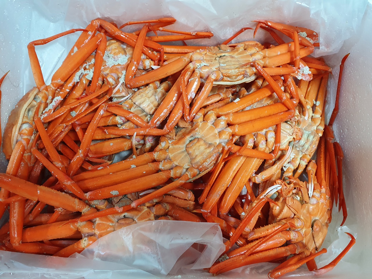 얼마 전 밴드에서 홍게 3kg 12마리(마리당 250g 정도) 2만 원에 팔길래 주문했는데, 어제 배달 왔습니다.