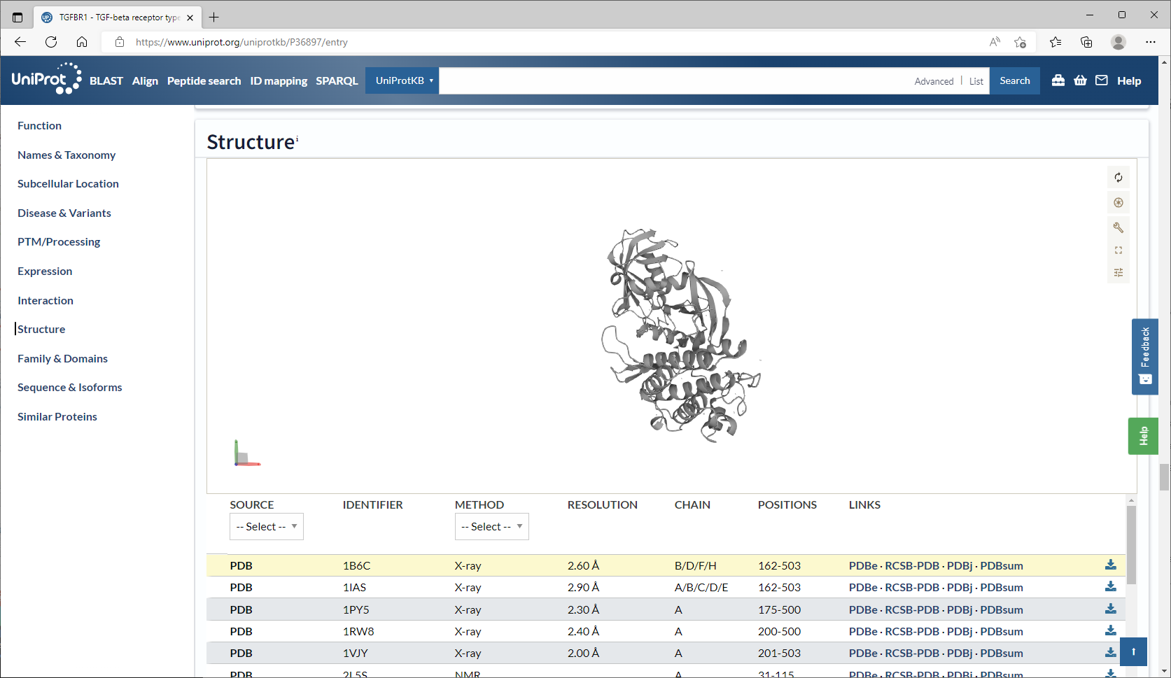 TGFR1_HUMAN에 해당하는 P36898을 클릭합니다.
