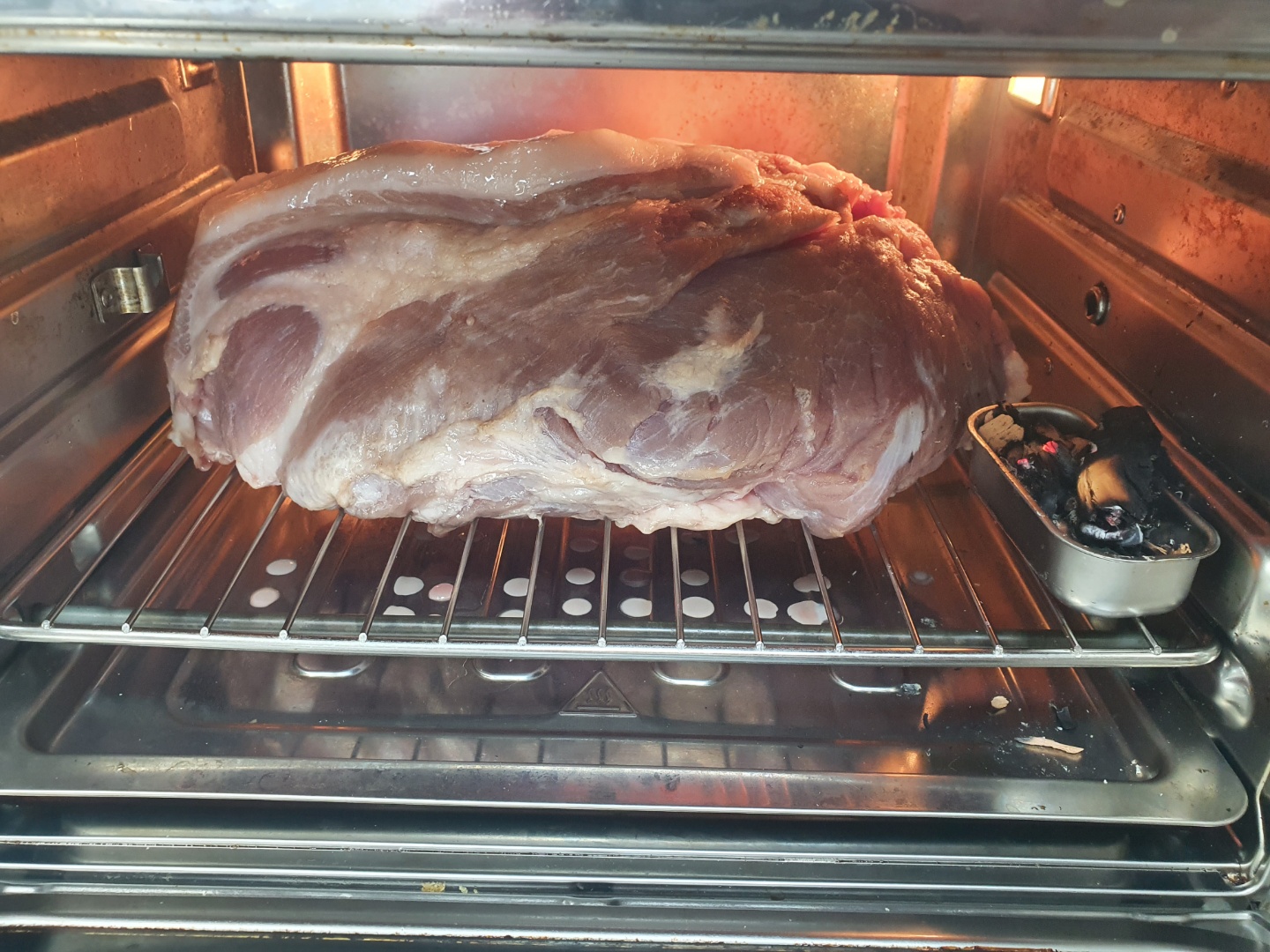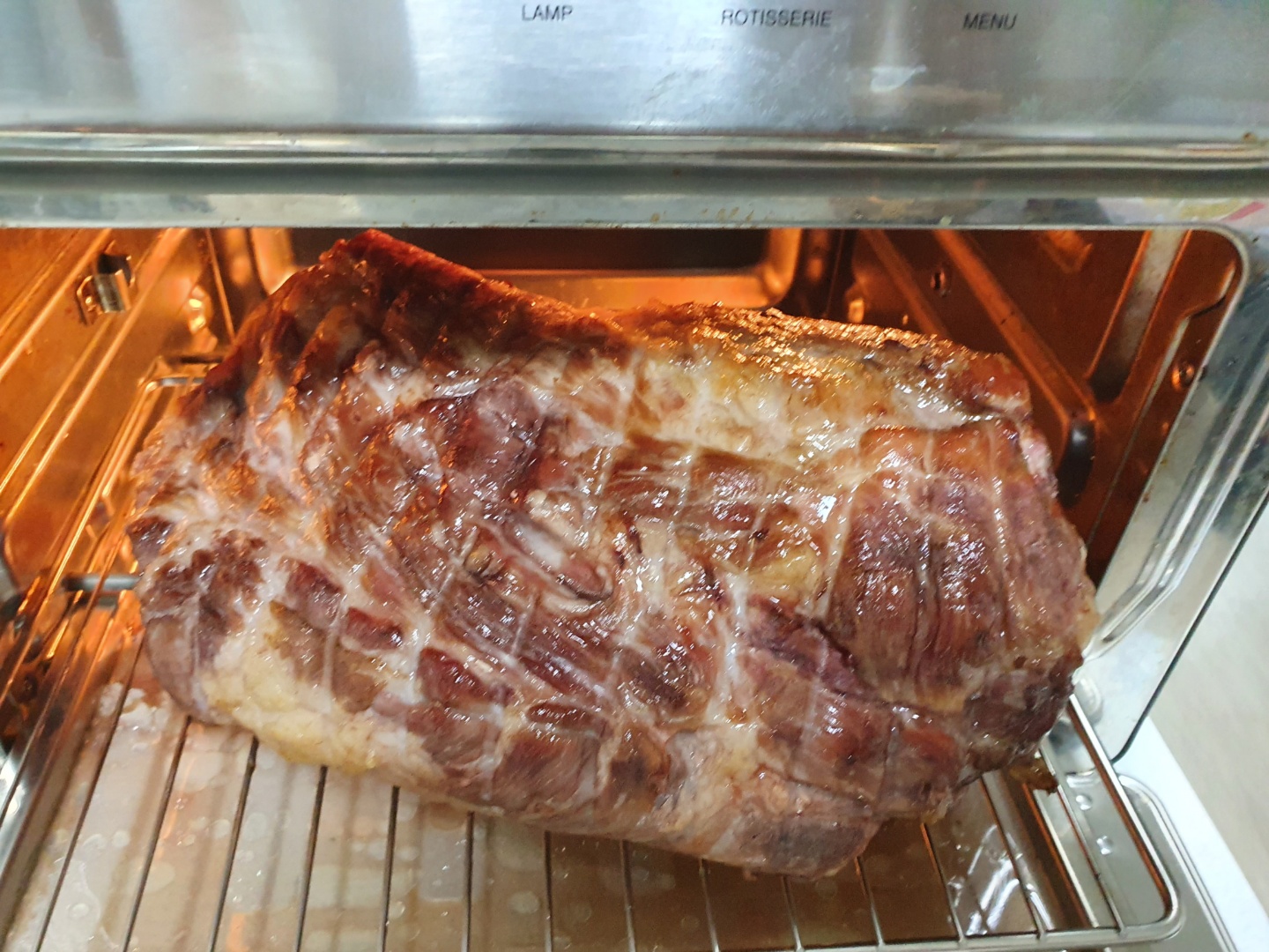 2시간 정도 후에 한번 뒤집어줬습니다. 4시간 정도 돌렸고, 심부 온도는 55도 정도