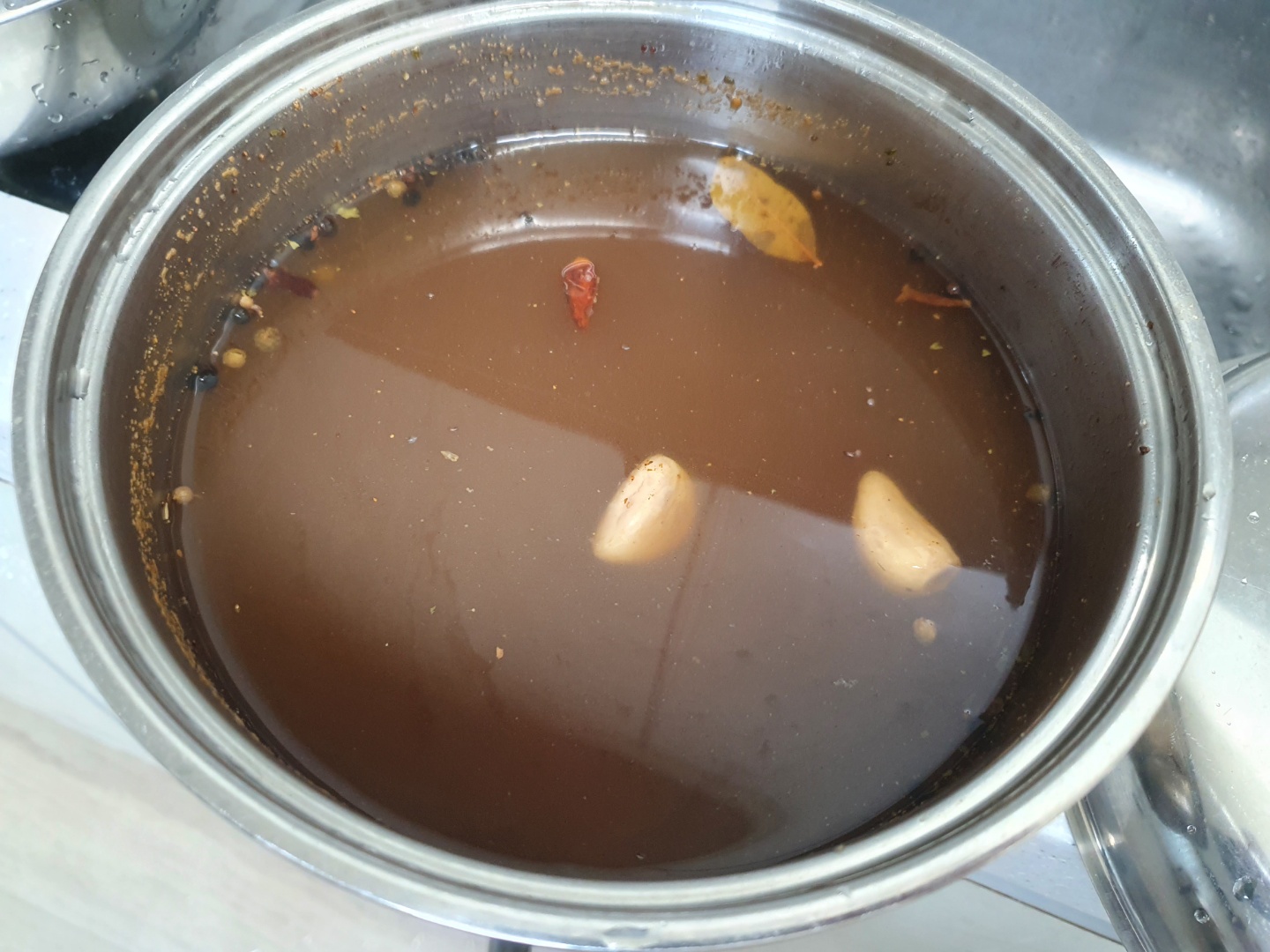 재료는 소금 (라면보다 살짝 짜다는 느낌이 들 정도, 마시고 싶지 않은 수준으로), 설탕, 피클링 스파이스(정향, 코리앤더, 겨자 등), 후추, 바질, 마늘, 마른 고추 아무거나, 월계수 잎, 로즈메리, 타임, 큐민, 바질, 마조람... 기타 집에 있는 거 아무거나...