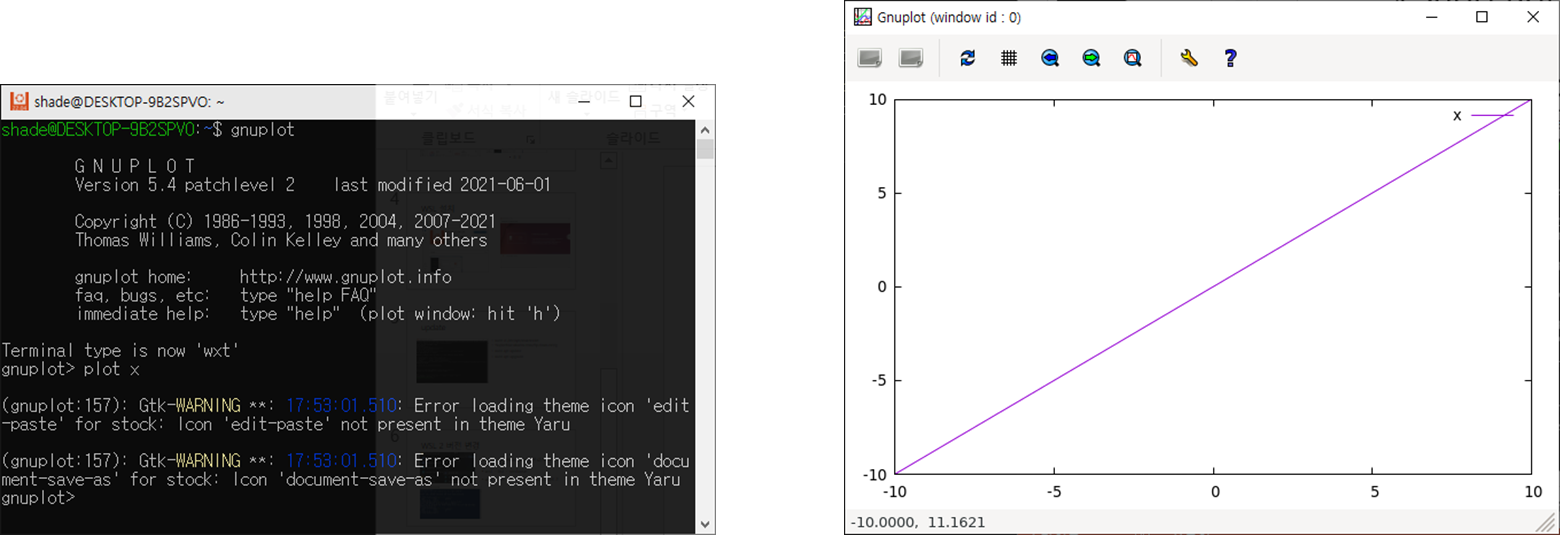 gnuplot> exit 를 입력하여 gnuplot을 종료합니다.