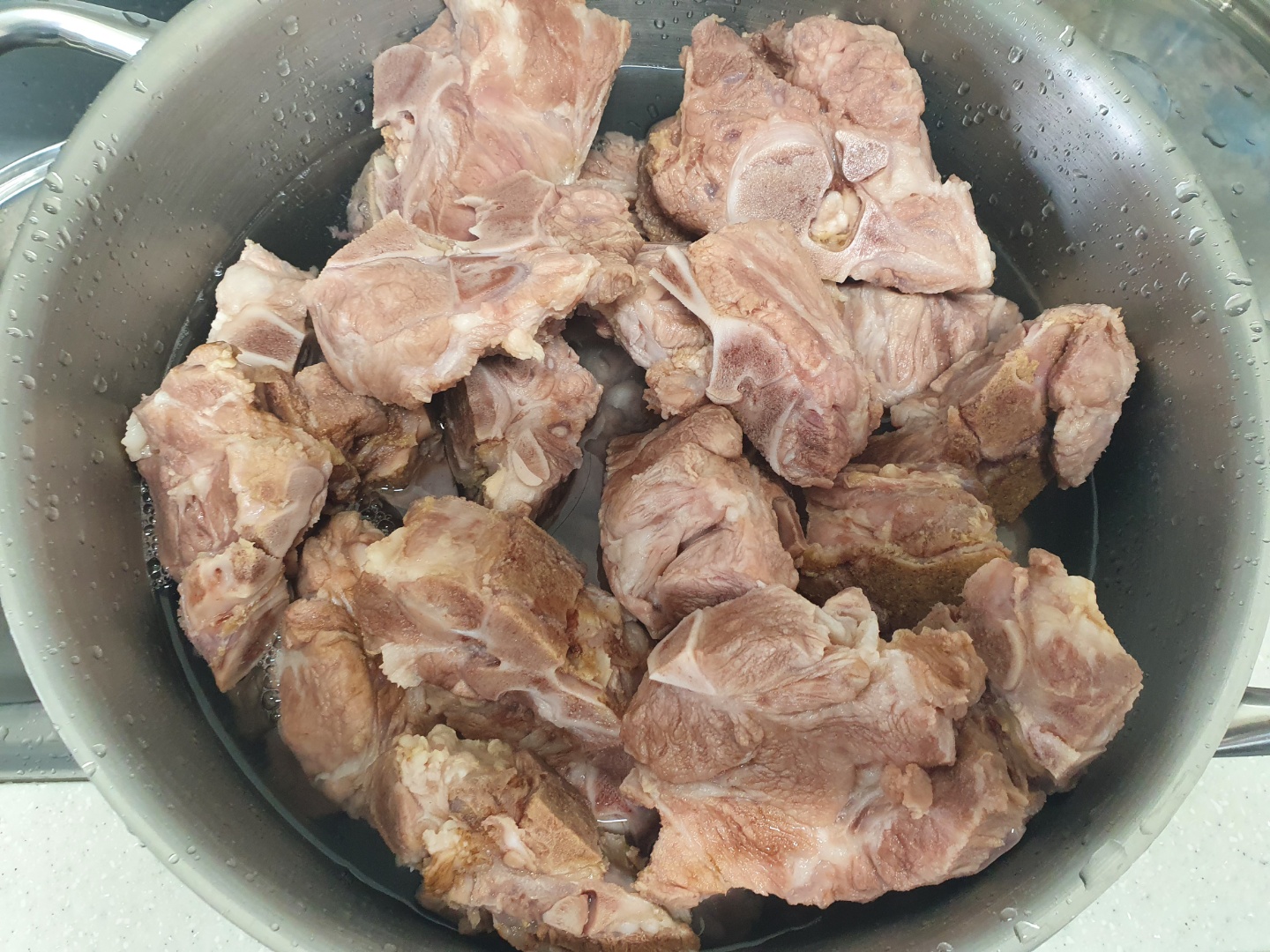귀찮으니까 그냥 뜨거운 물에 고기를 넣는 게 아니라, 고기를 넣은 채로 물을 끓였습니다.