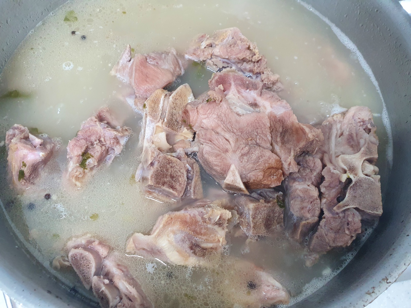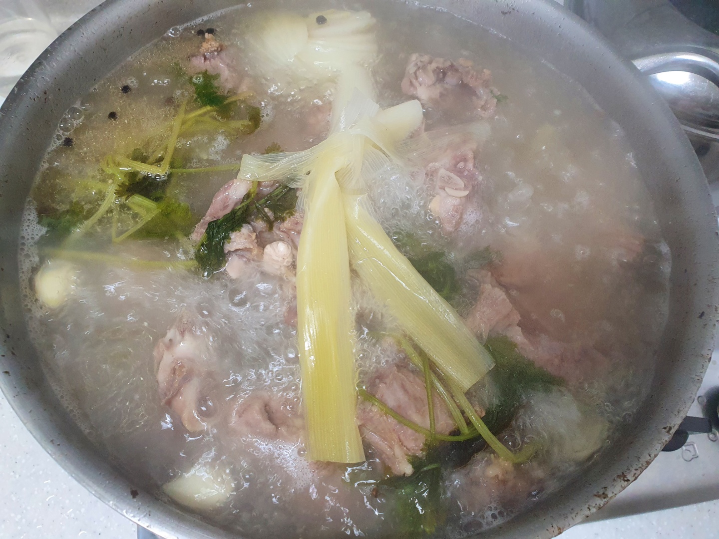 2시간.. 3시간 정도 삶았습니다. 국물이 매우 진하게 나왔습니다.
