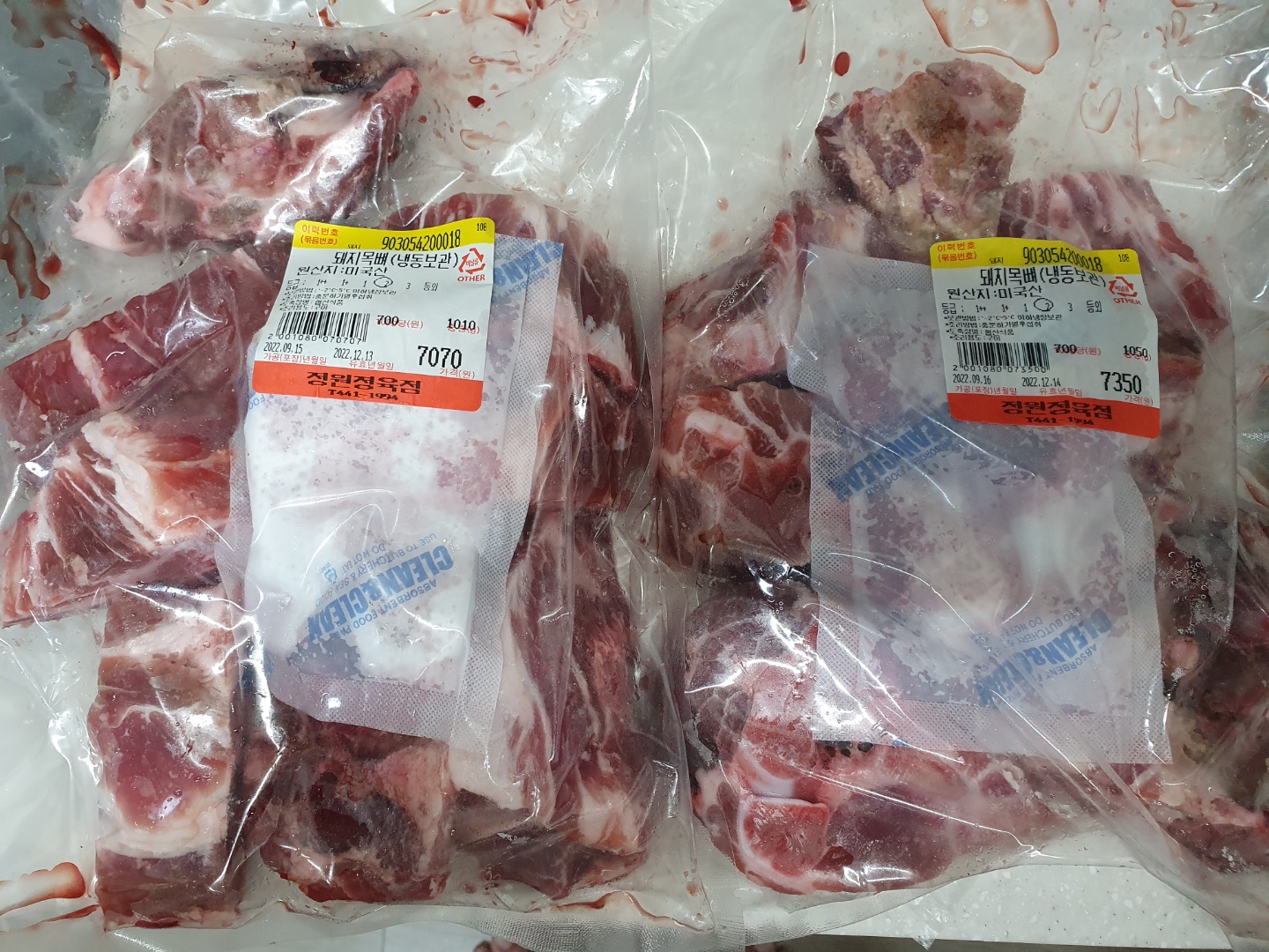 돼지 목뼈는 등뼈에 비해 살이 더 많이 붙어있습니다. 등뼈보다 비쌉니다. 등뼈는 보통 1kg에 3천 원대인데, 목뼈는 1kg에 5천 원 정도 합니다.
