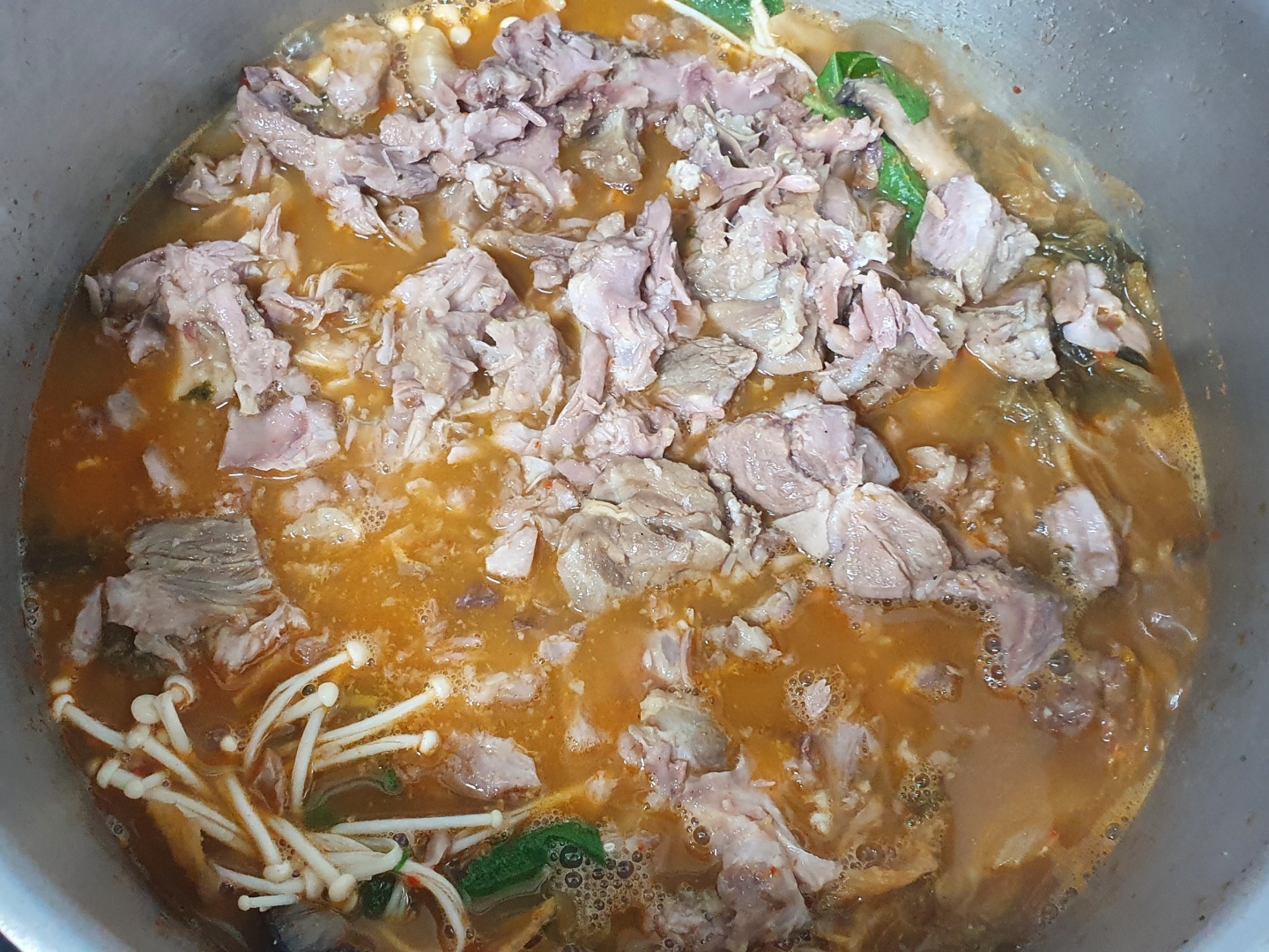 2시간.. 3시간 정도 삶았습니다. 국물이 매우 진하게 나왔습니다.