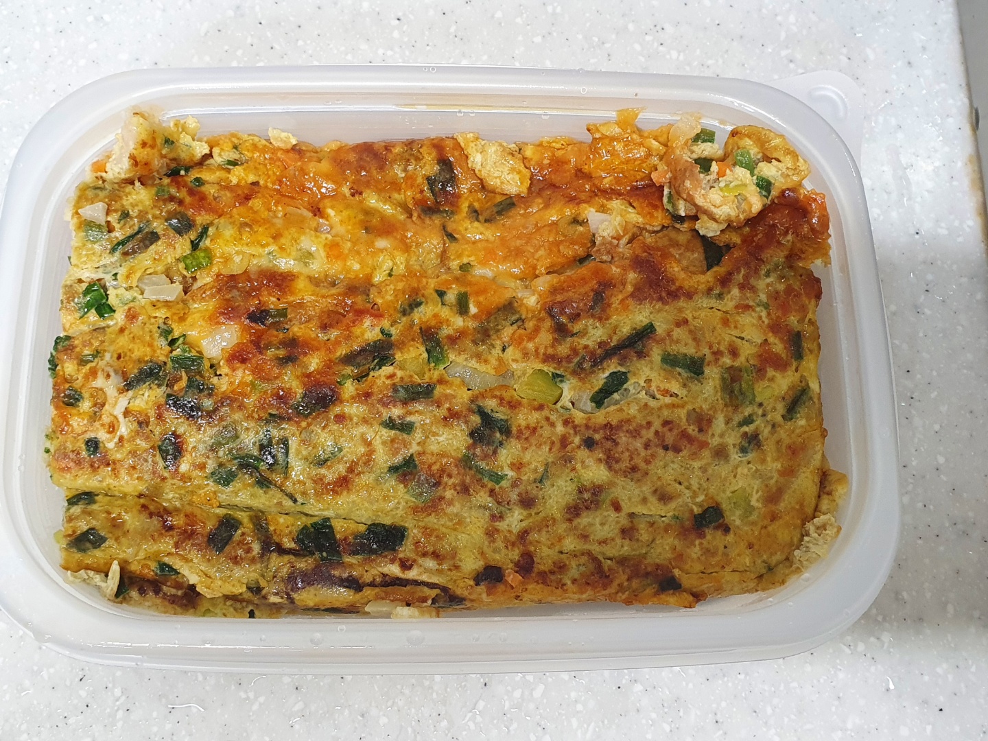 전혀 계란말이가 아닌 밀가루 없는 계란 부추전이 되어버린 것 같지만... 아무튼 직장 가져가서 잘 먹었습니다.