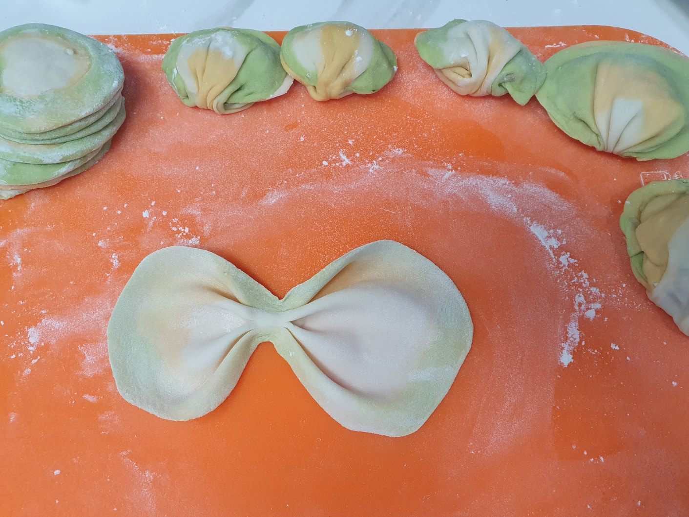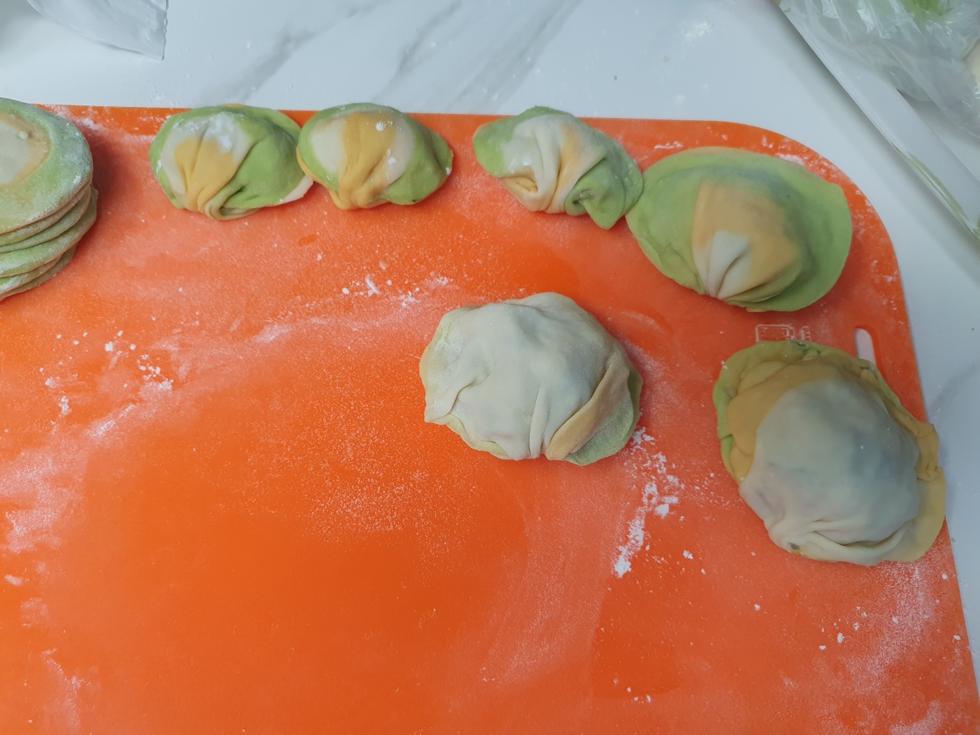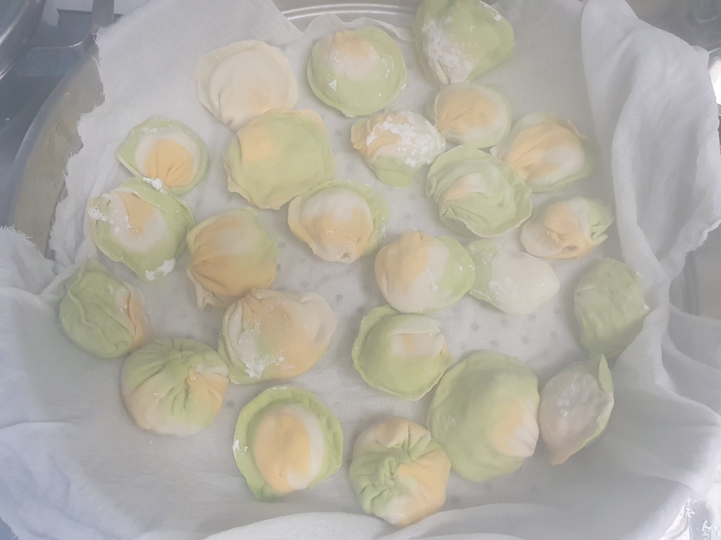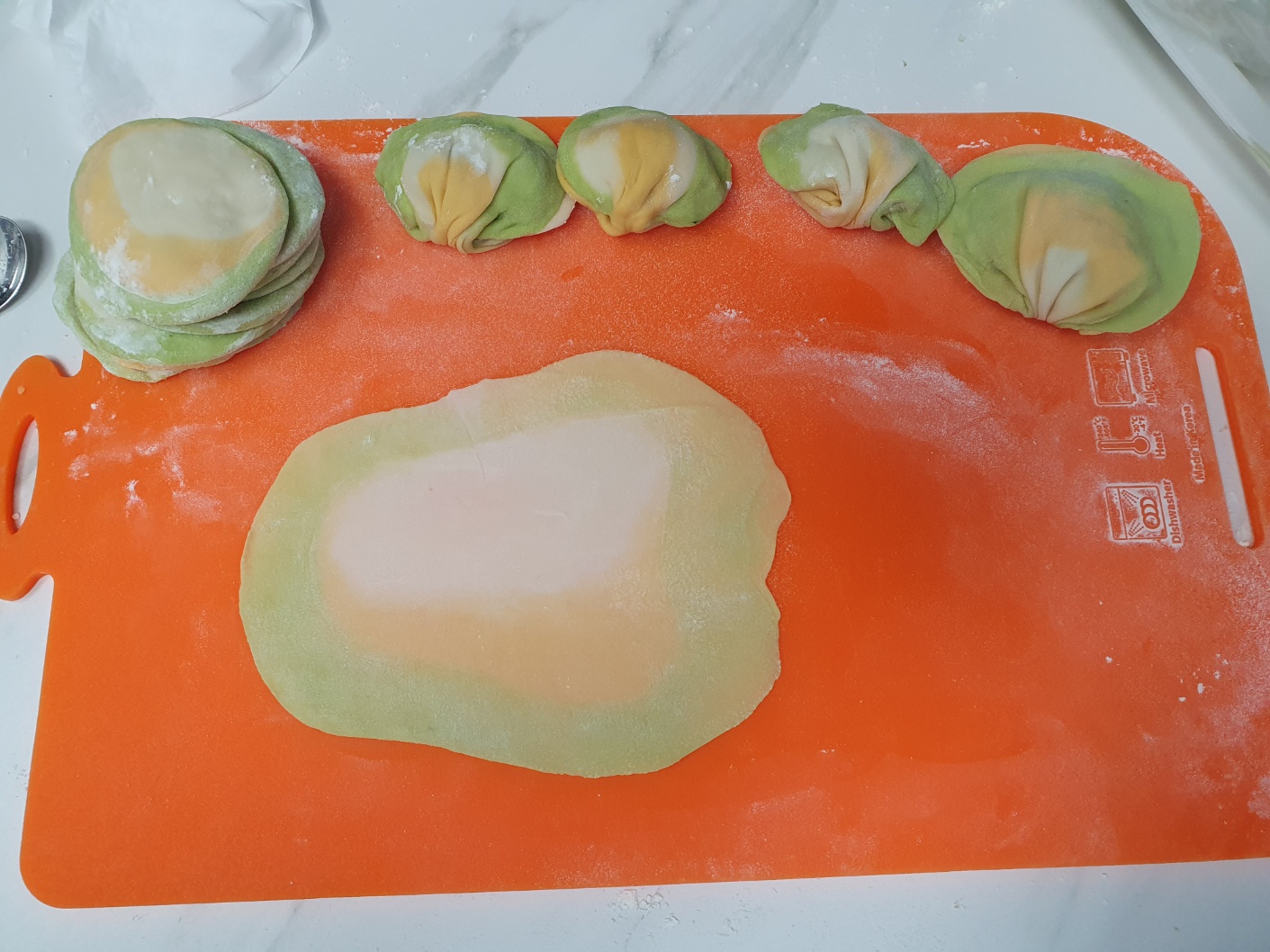 만두피 - 밀가루, 물, 소금, 부추즙, 당근즙
