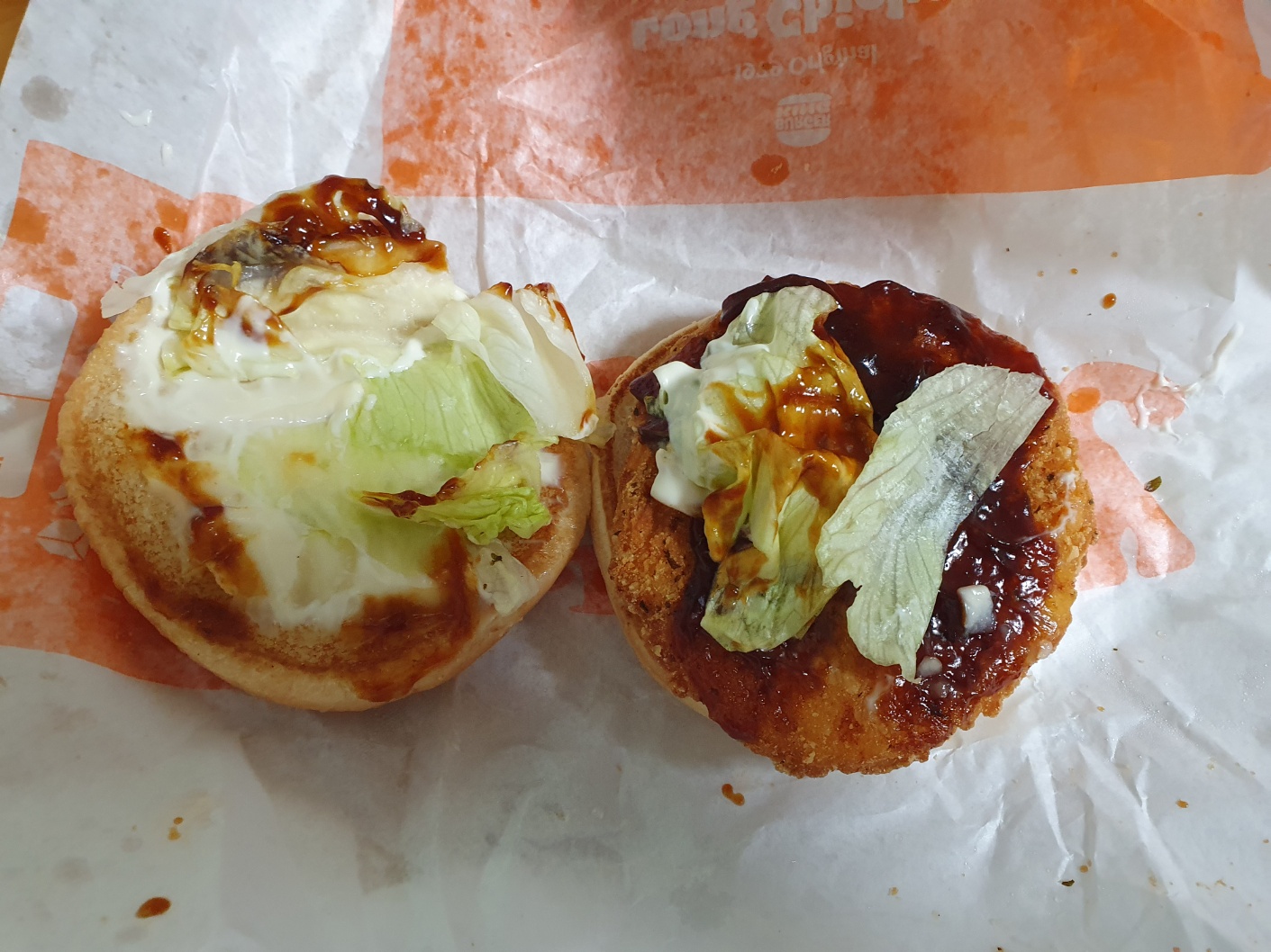 왼쪽이 제가 주문한 치킨킹BLT... 비슷한 이름의 킹치킨버거를 파는군요...