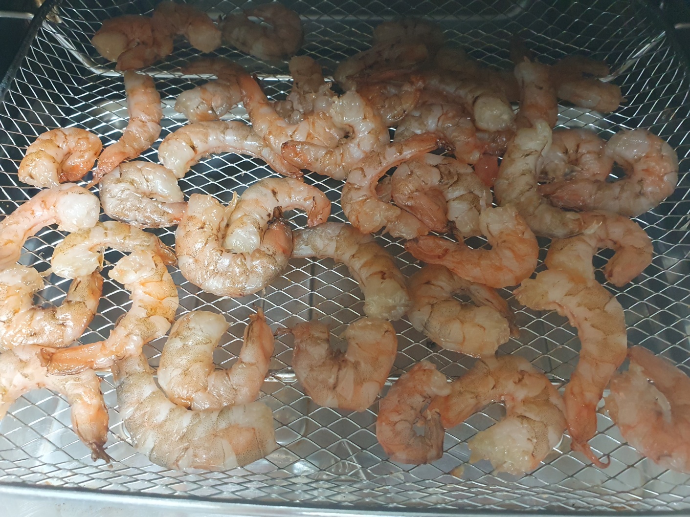 냉동 흰다리 새우를 사서 녹인 후에 열심히 까고, 내장을 제거하고 에어프라이어에 말렸습니다.