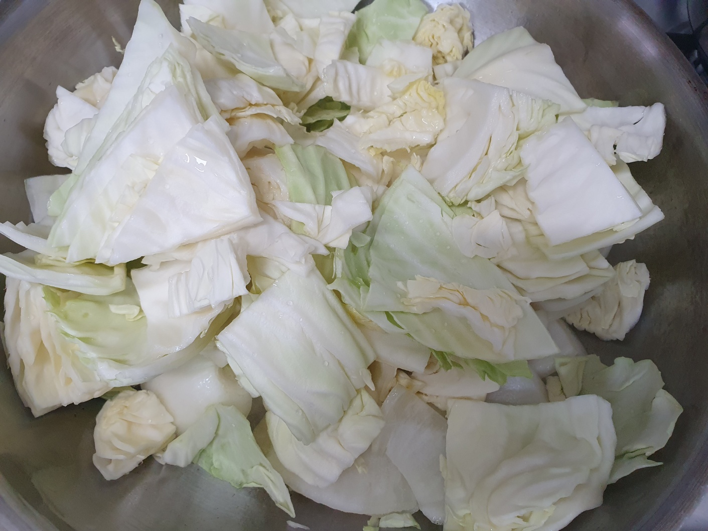 양배추 1통, 양파 3개, 당근 2개 마늘 10개, 새송이버섯 2개