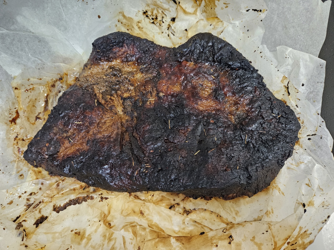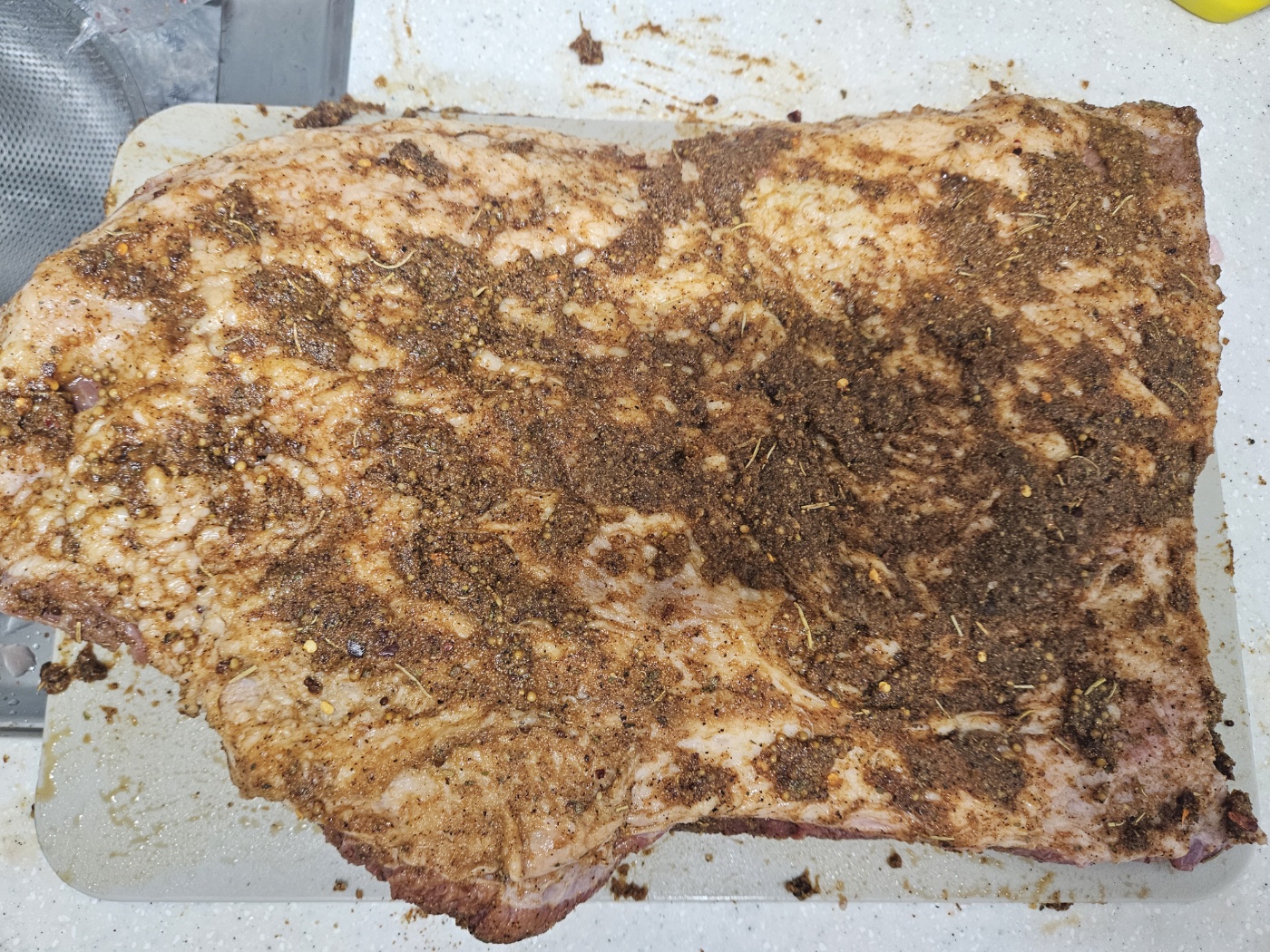 이런저런 거 많이 발랐습니다. 브리스킷 럽, 케이준 시즈닝, 타코 시즈닝, 마늘가루, 머스터드, A1 스테이크소스, 후추, 소금... 오븐에 넣고 120도 정도로 3~4시간 굽습니다.