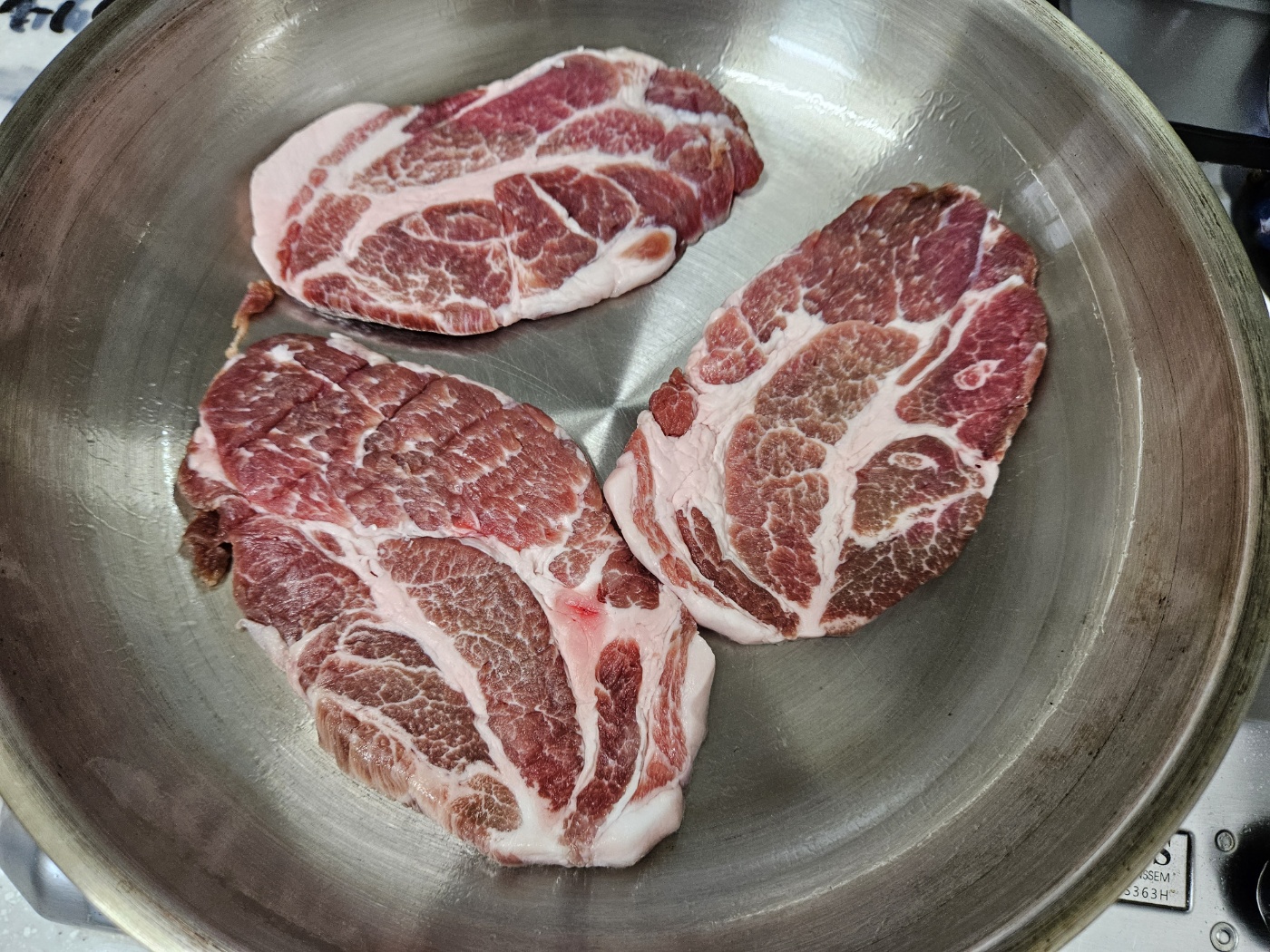 해보신 분은 아시겠지만, 스텐팬 제대로 예열 안 하면 고기가 엄청 달라붙습니다. 고깃집에서도 무쇠나 석쇠에 고기를 굽다 보면 그런 경우가 자주 있습니다.