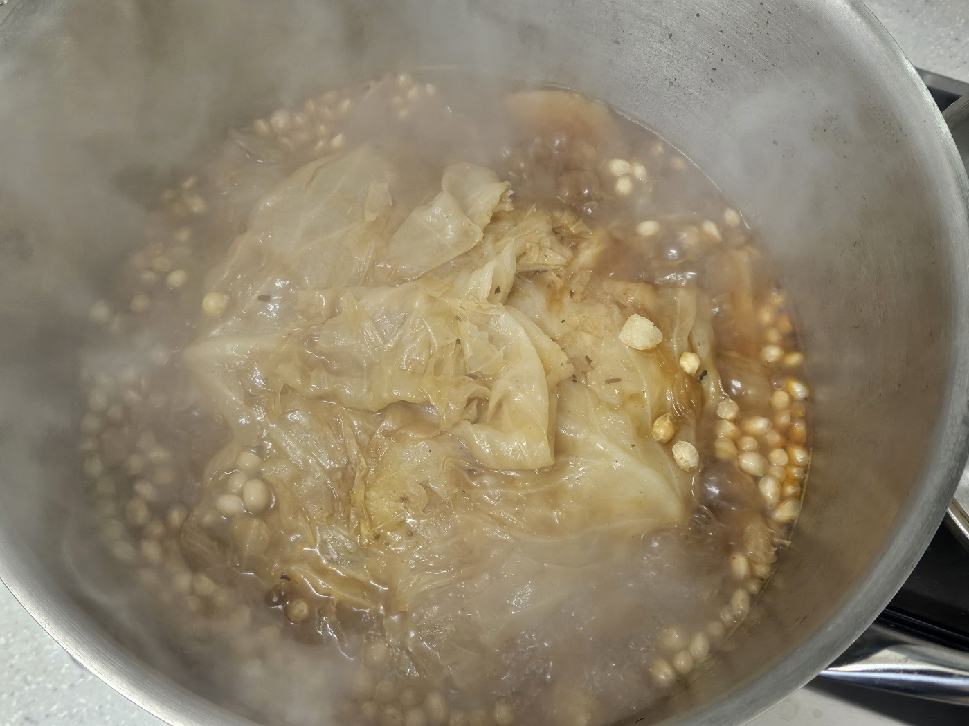 채소의 성분이 부족한 것 같아서 콩과 당근을 넣고 더 끓였습니다.