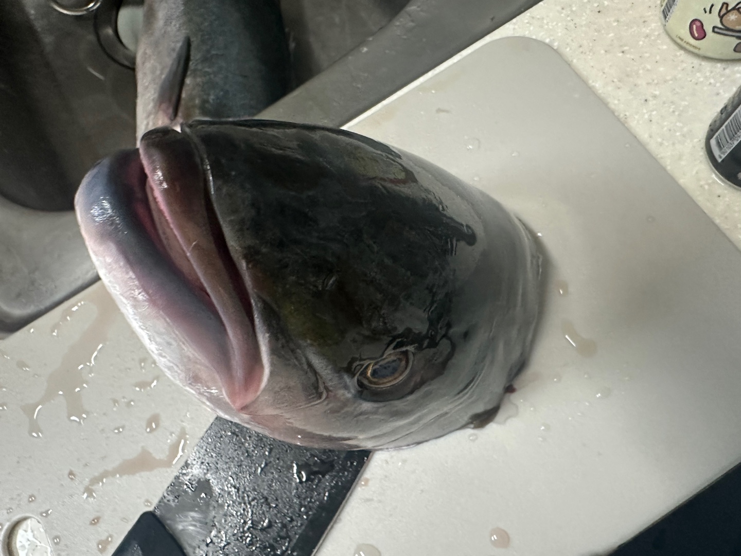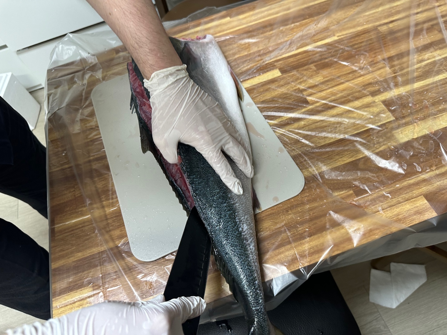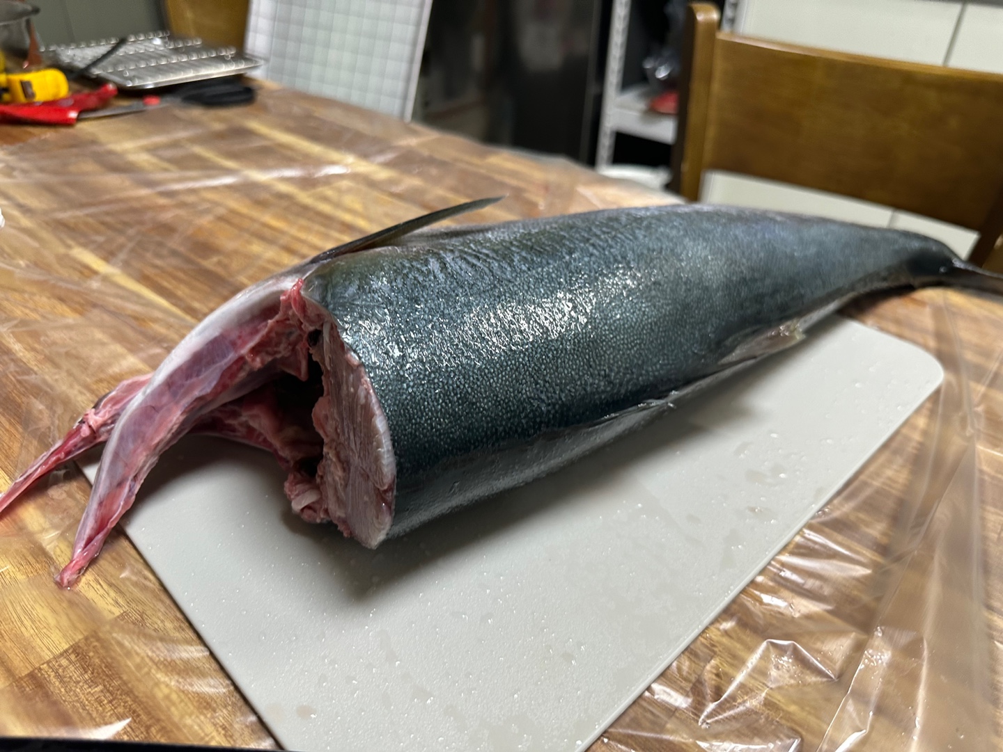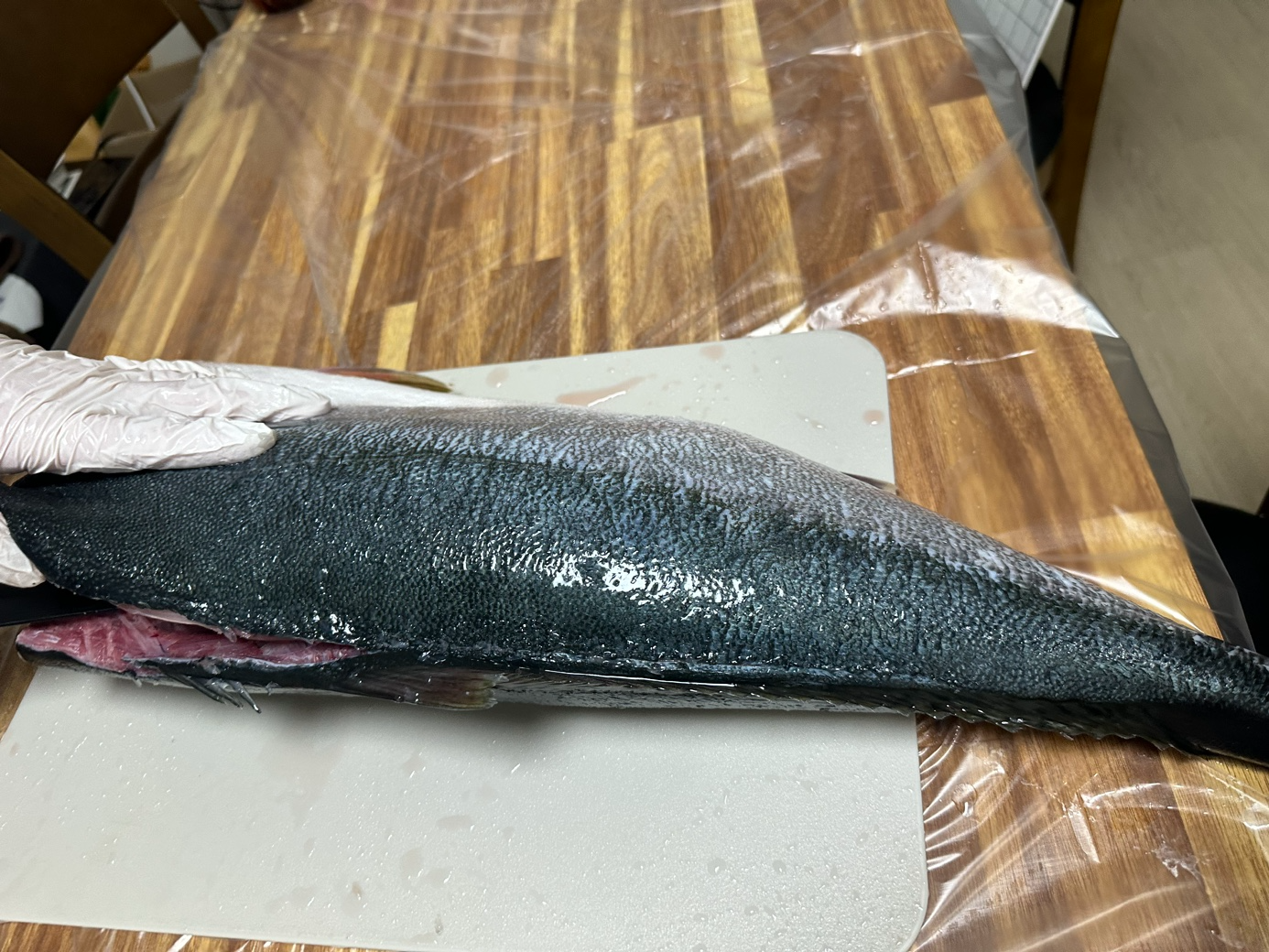 석장 뜨기를 할 겁니다. 등 쪽부터 칼을 넣었습니다. 비늘이 많고 가죽이 두꺼워서 힘듭니다.