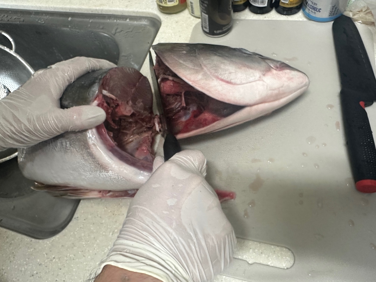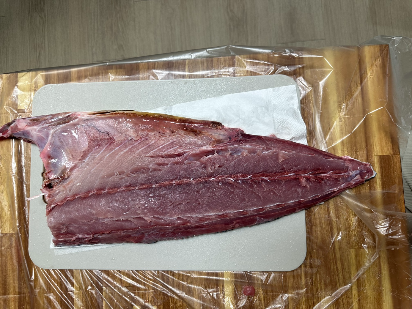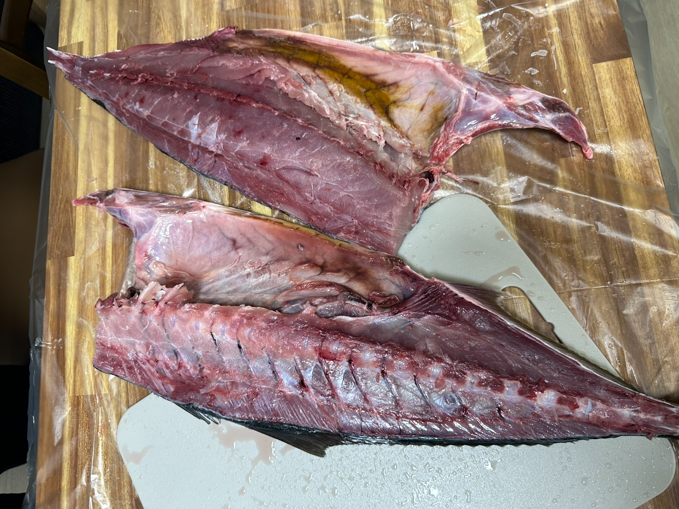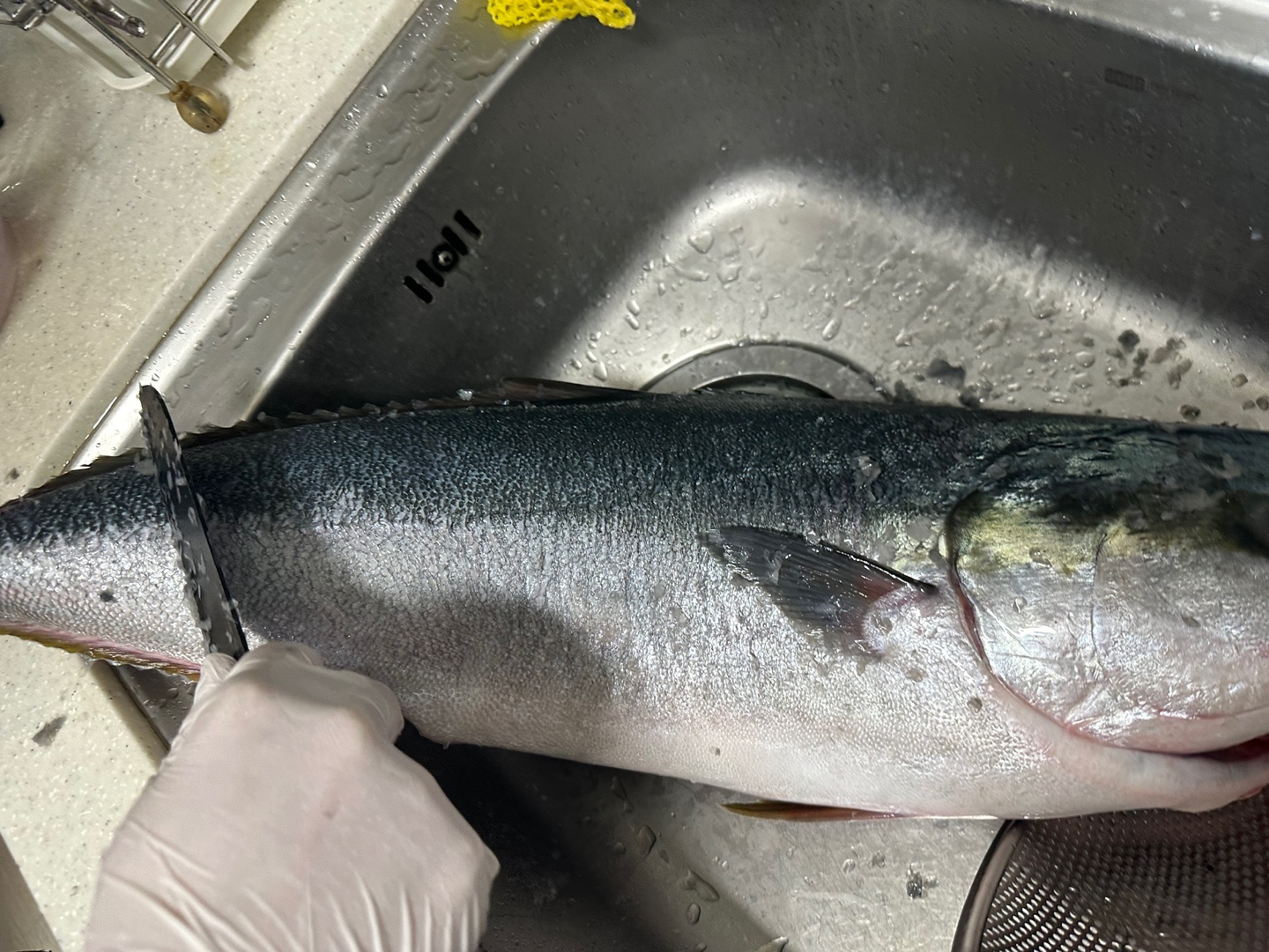 석장 뜨기를 할 겁니다. 등 쪽부터 칼을 넣었습니다. 비늘이 많고 가죽이 두꺼워서 힘듭니다.