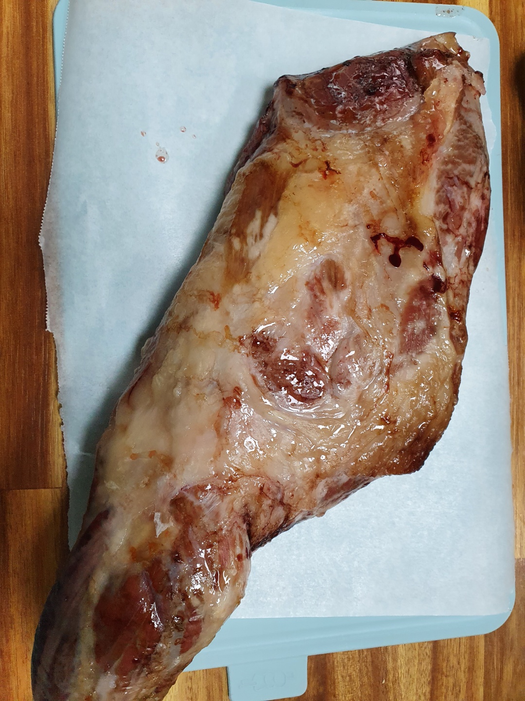 130도 정도에서 2시간 구웠는데, 뼈 때문인지 살짝 핏기가 남아있었습니다.
