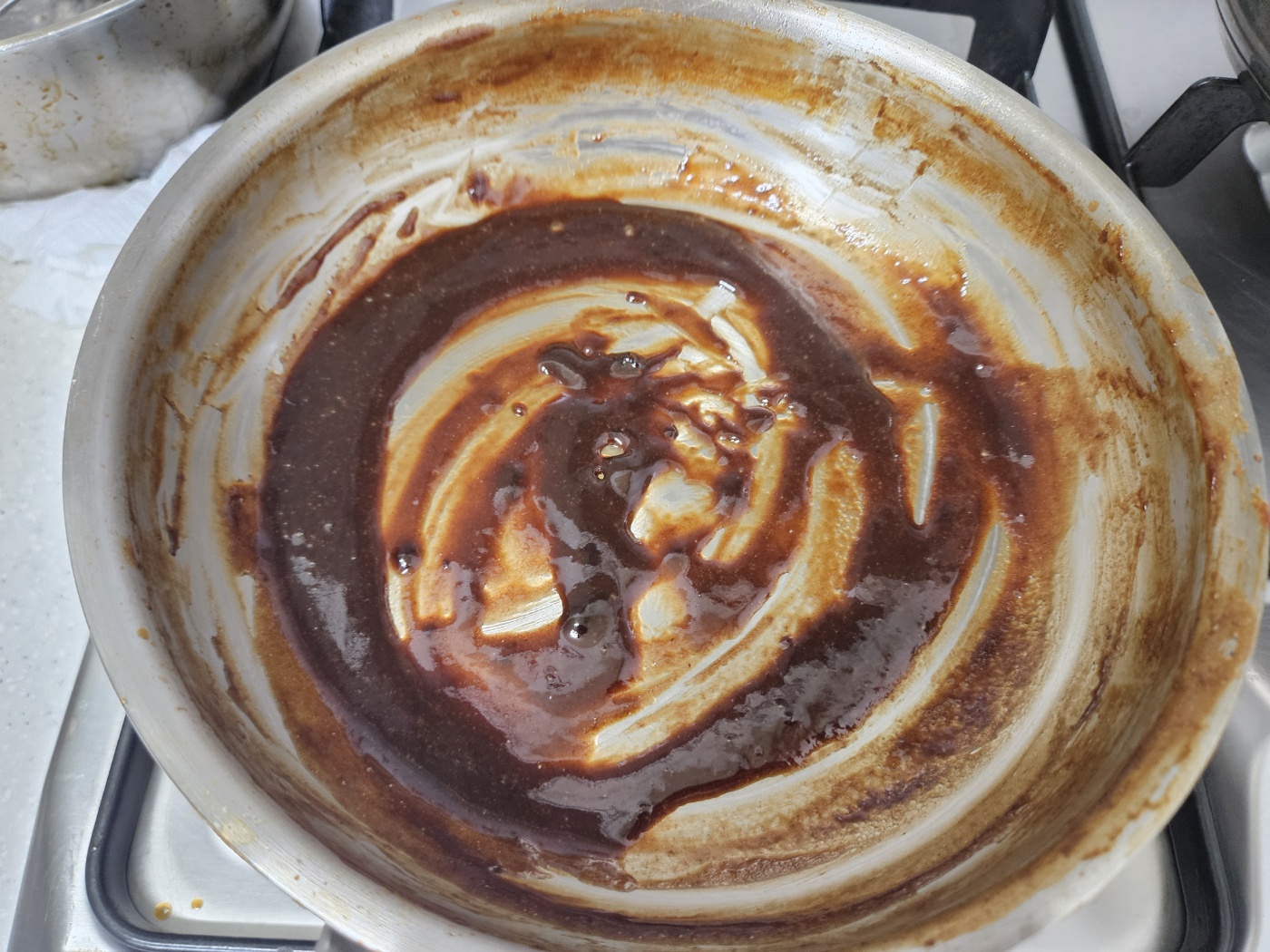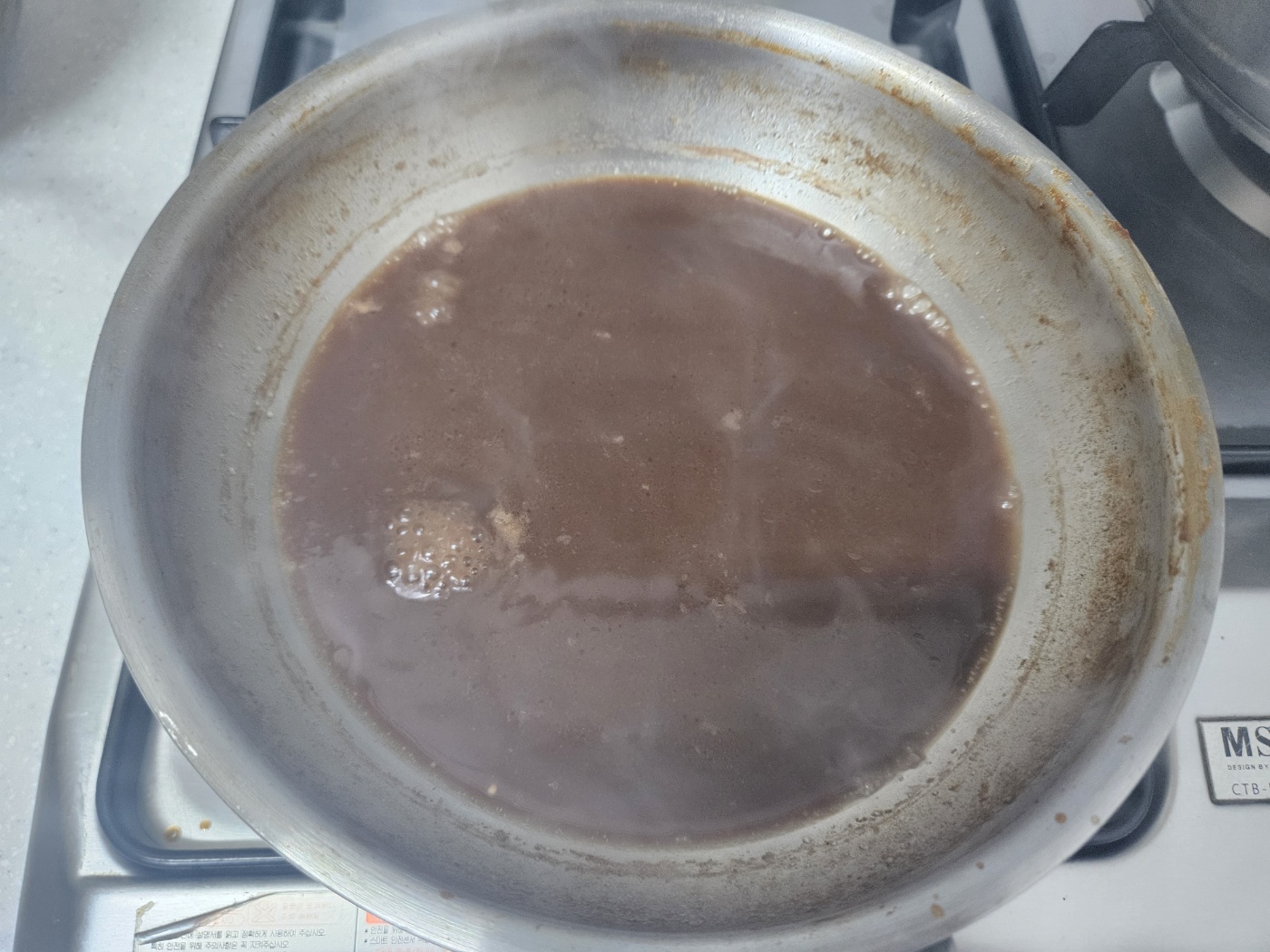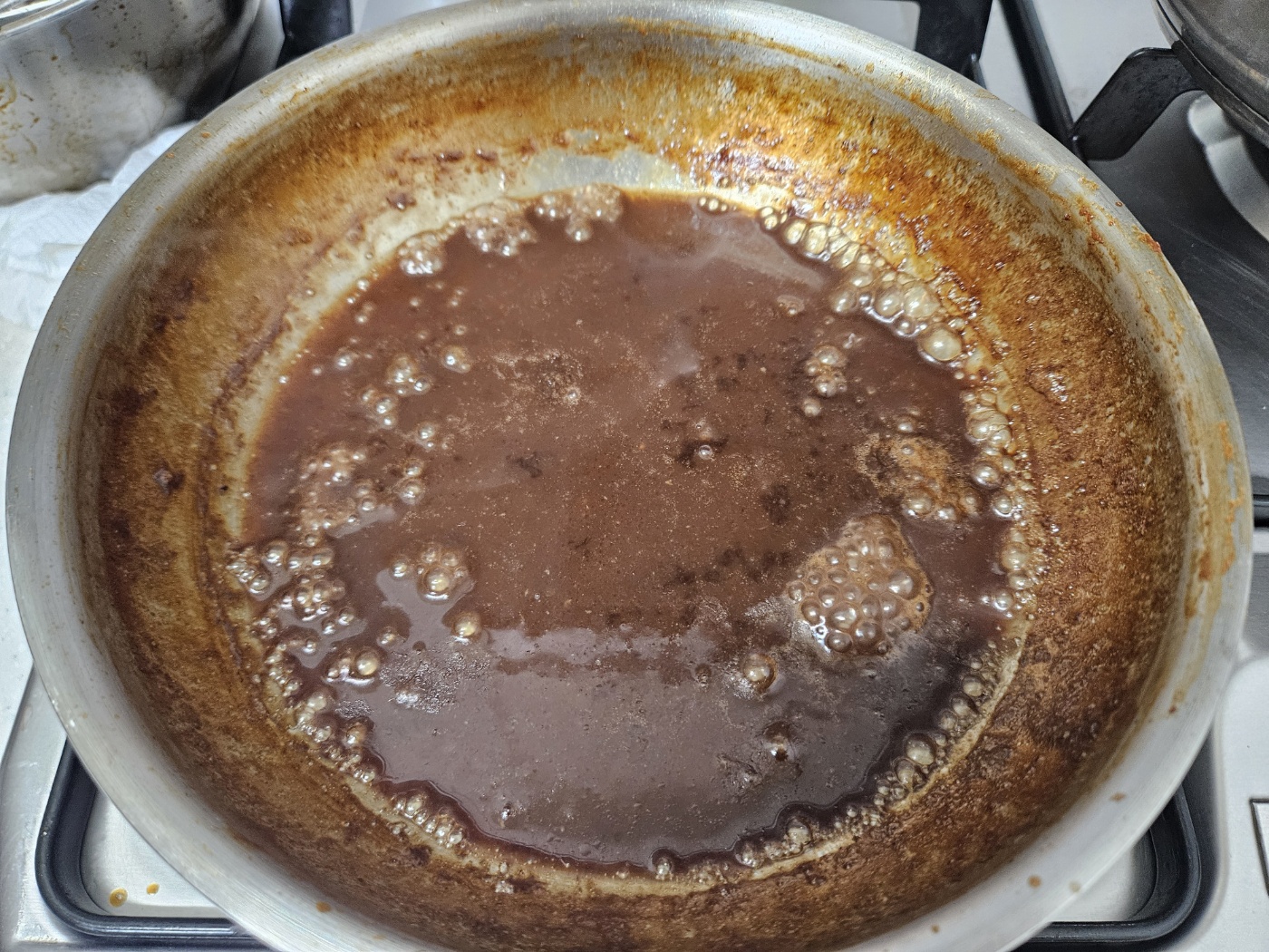 조리다 보면 이렇게 걸쭉해집니다. 그런데 이거 식으면 점성이 더 높아집니다. 좀 덜 조리는 게 좋습니다.