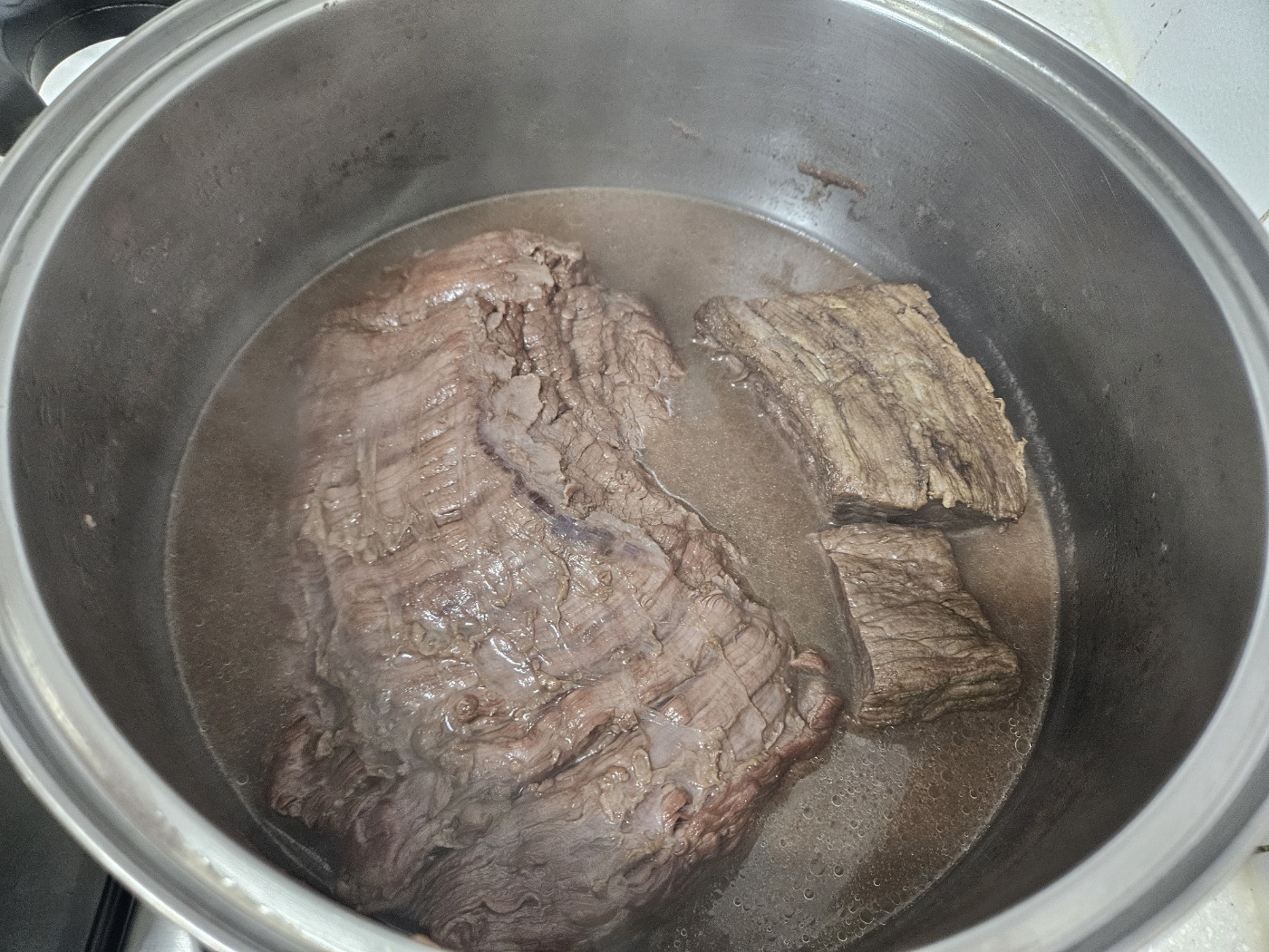 부위는 치마살하고 양지입니다. 삶은 후 고기는 건지고 국물만 팬에서 졸입니다.