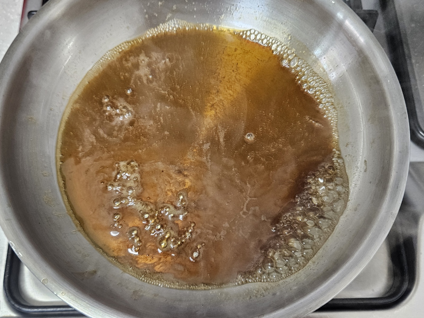 남긴 오징어 간은 냄비에 물을 조금 넣고 삶았습니다.
