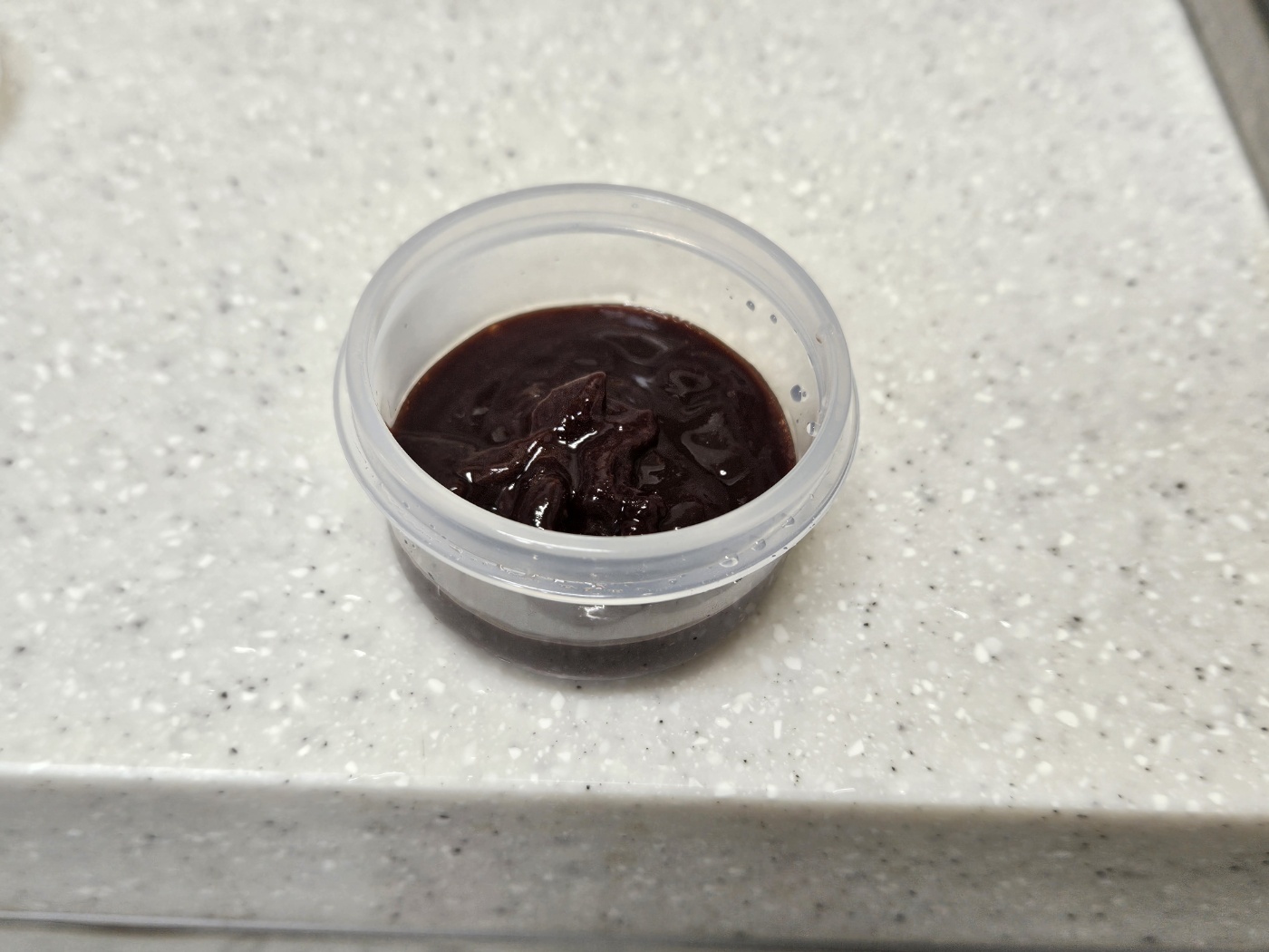 조리고 나니 저 조그만 통에 반도 안찰 정도로 줄었습니다. 졸인 소스는 구운 오징어 맛이 납니다.