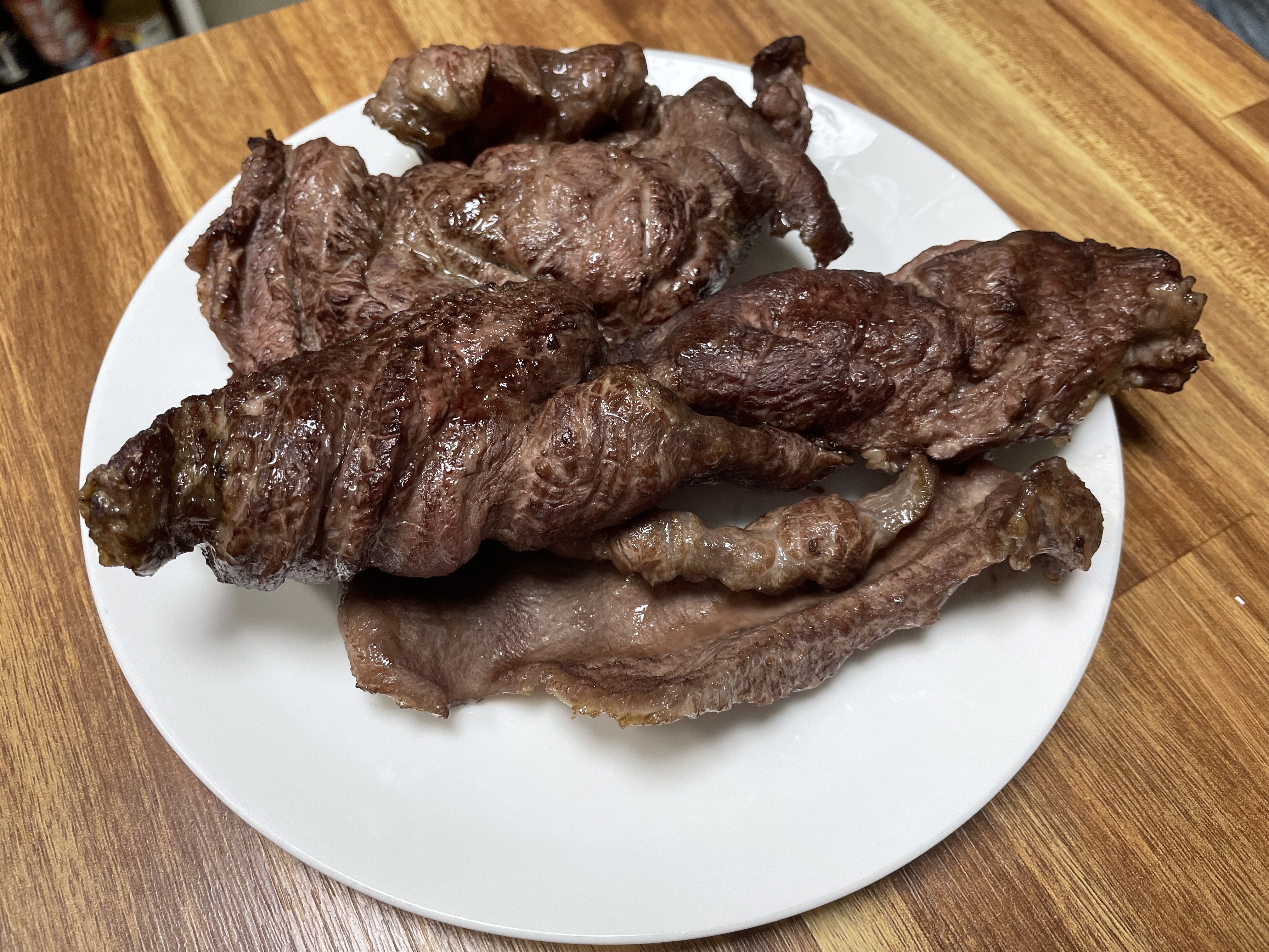 부챗살은 좋습니다. 특유의 냄새가 강해서 싫어하는 사람도 있긴 하지만... 프라이팬에 구워도 좋고, 오븐에 구워도 좋고, 수비드 해도 좋고, 국을 끓여도 좋고, 장조림을 해도 좋습니다. 살짝 익히면 힘줄이 (콜라겐) 질기고 단단한데, 오래 익히면 부드러워집니다. 스테이크에는 힘줄이 가는 부위가 좋고, 국, 장조림에는 콜라겐이 많은 부위가 좋습니다.