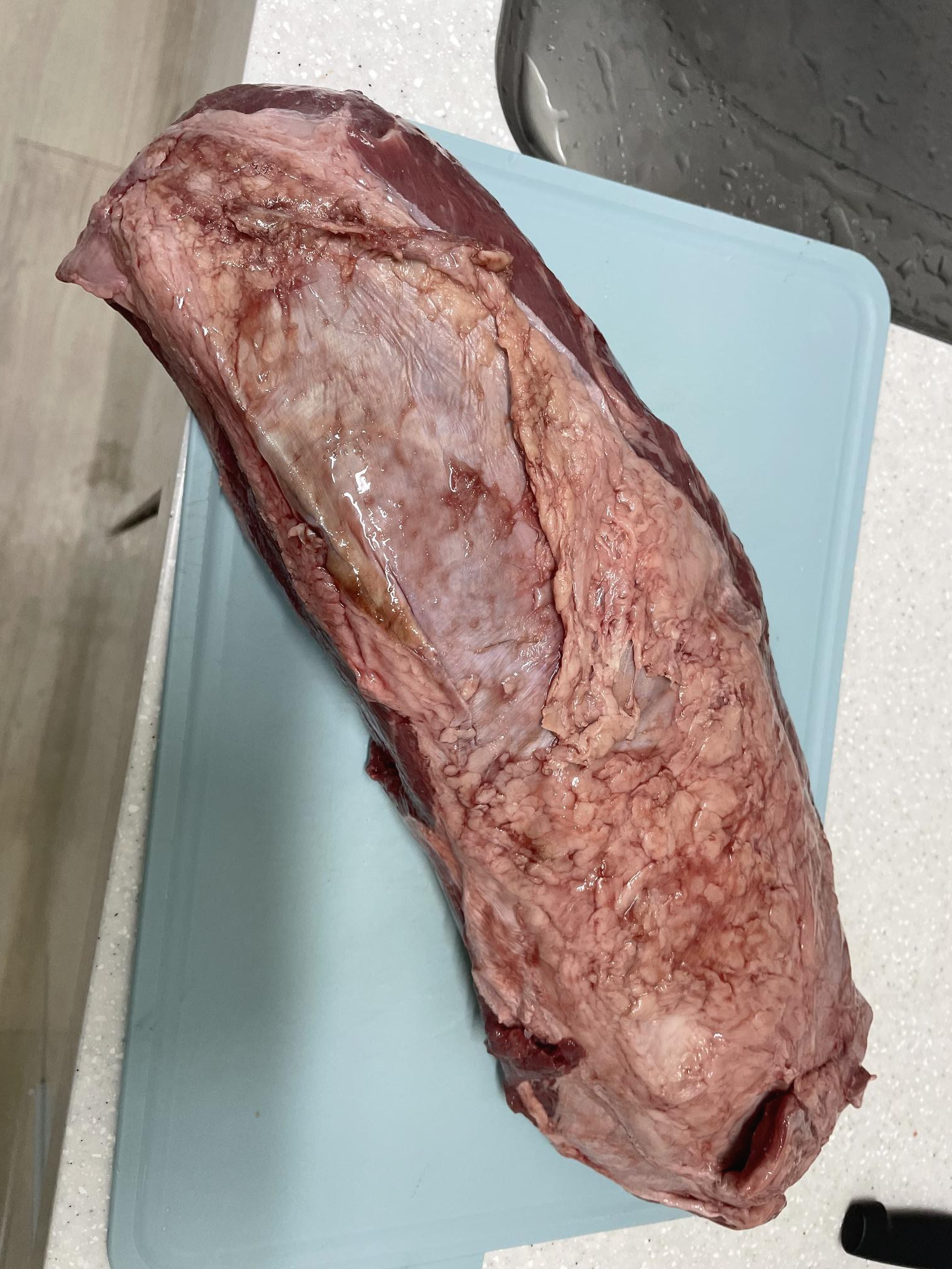 기름과 근막을 제거해줍니다. 손질 실력이 안좋아서 살코기가 근막에 많이 붙었습니다. 저는 근막을 버리지 않고 구워 먹습니다.