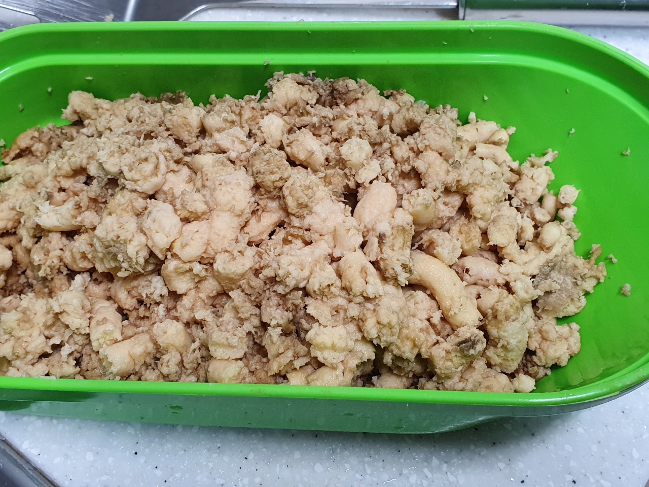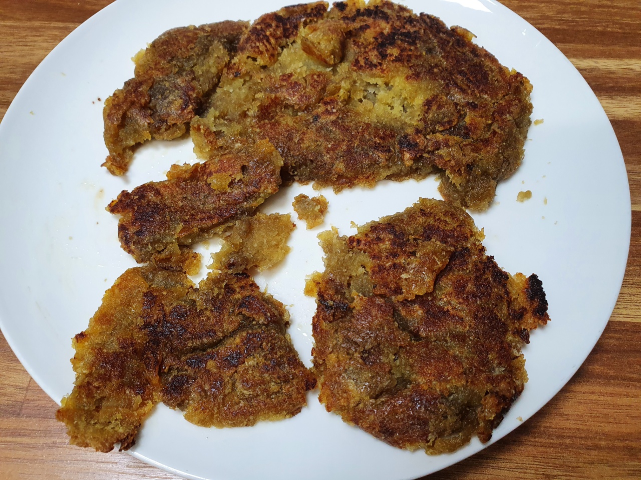 그리고 후회했습니다. 먼저 잘 문친 후에 올렸어야 하는 건데... 그래도 전분이 익으면서 점성이 생겨서 모양 잡기는 어렵지 않습니다. 다만 힘이 약해서 뒤집기는 좀 쉽지 않습니다.