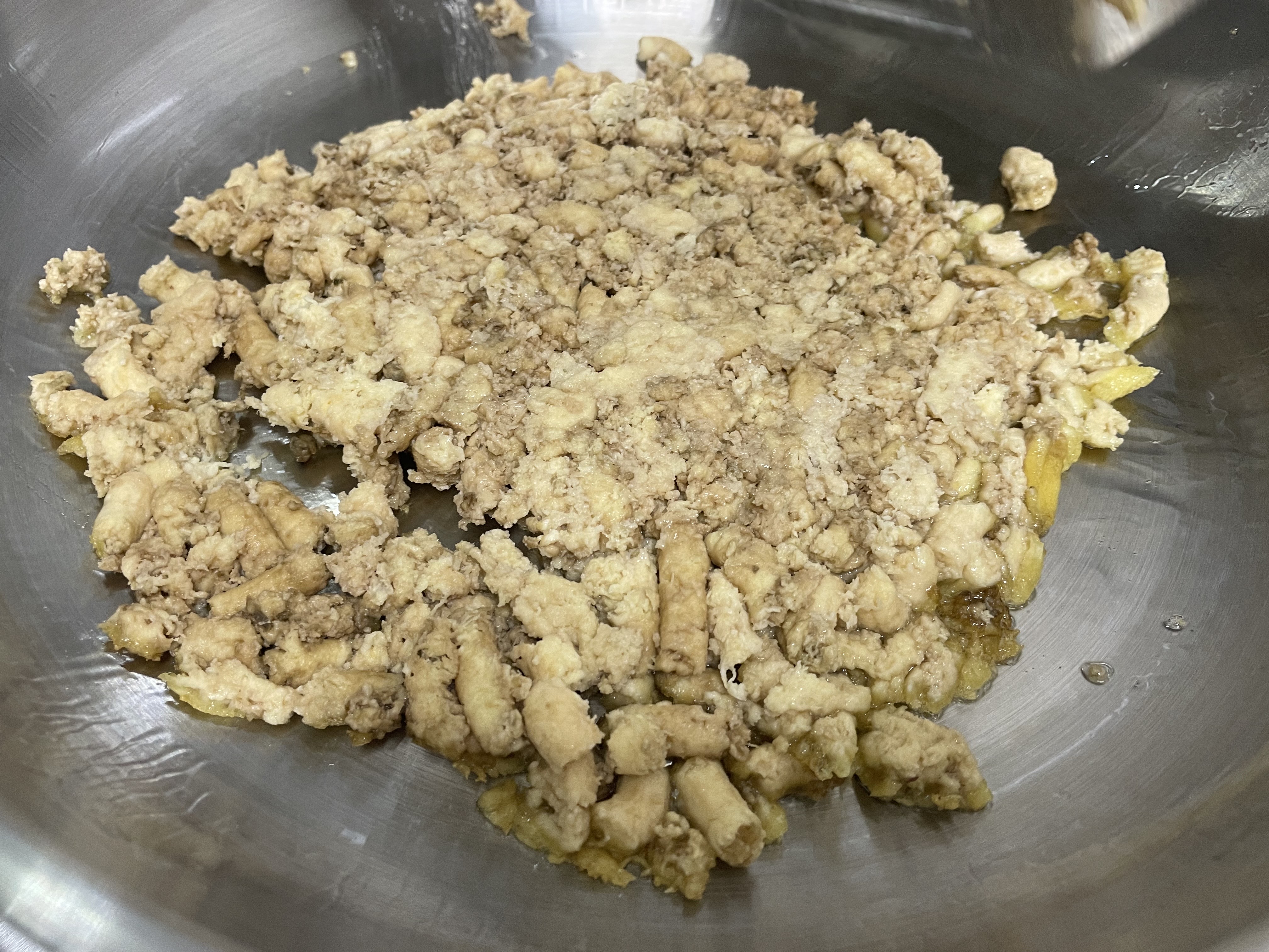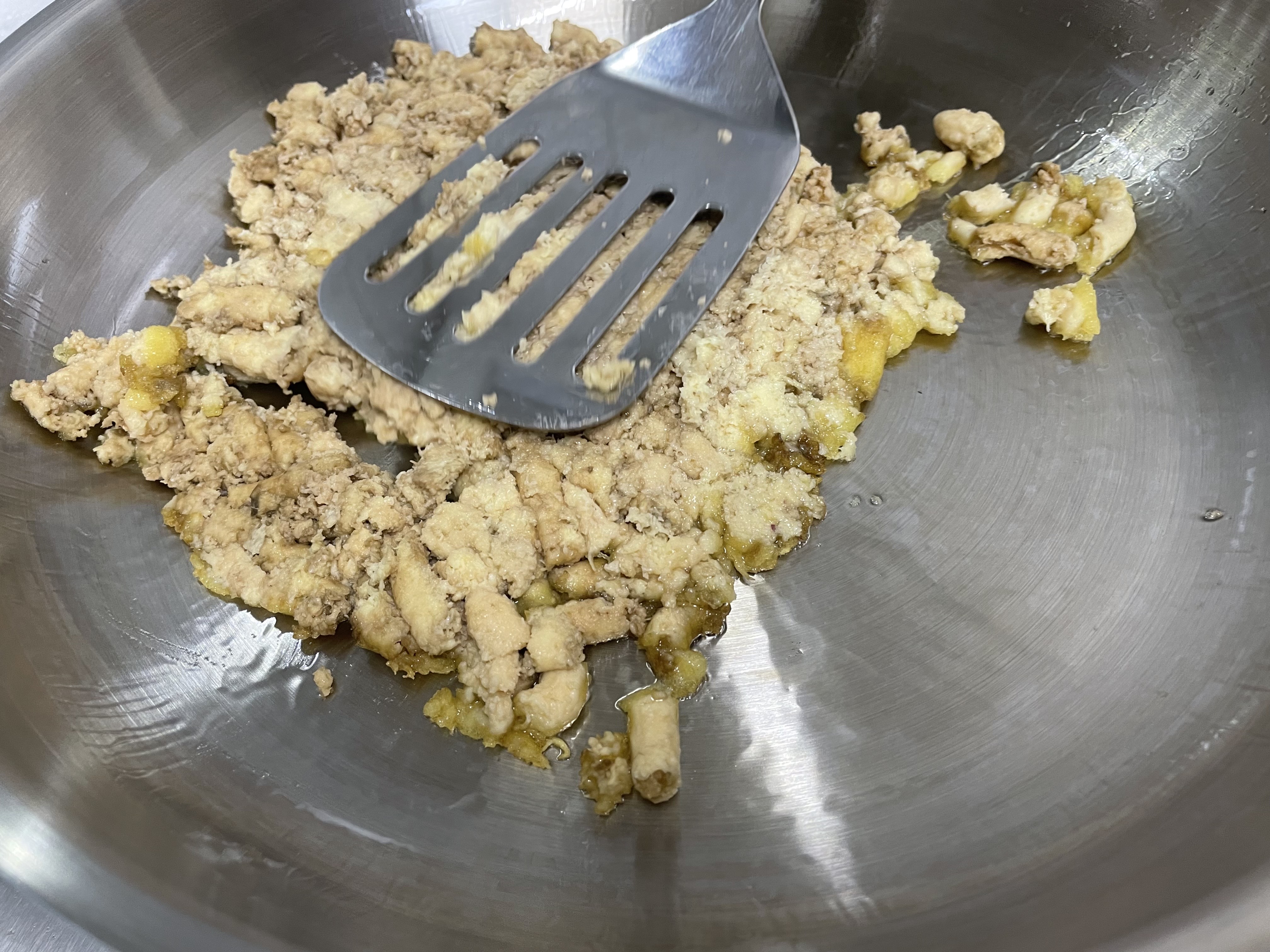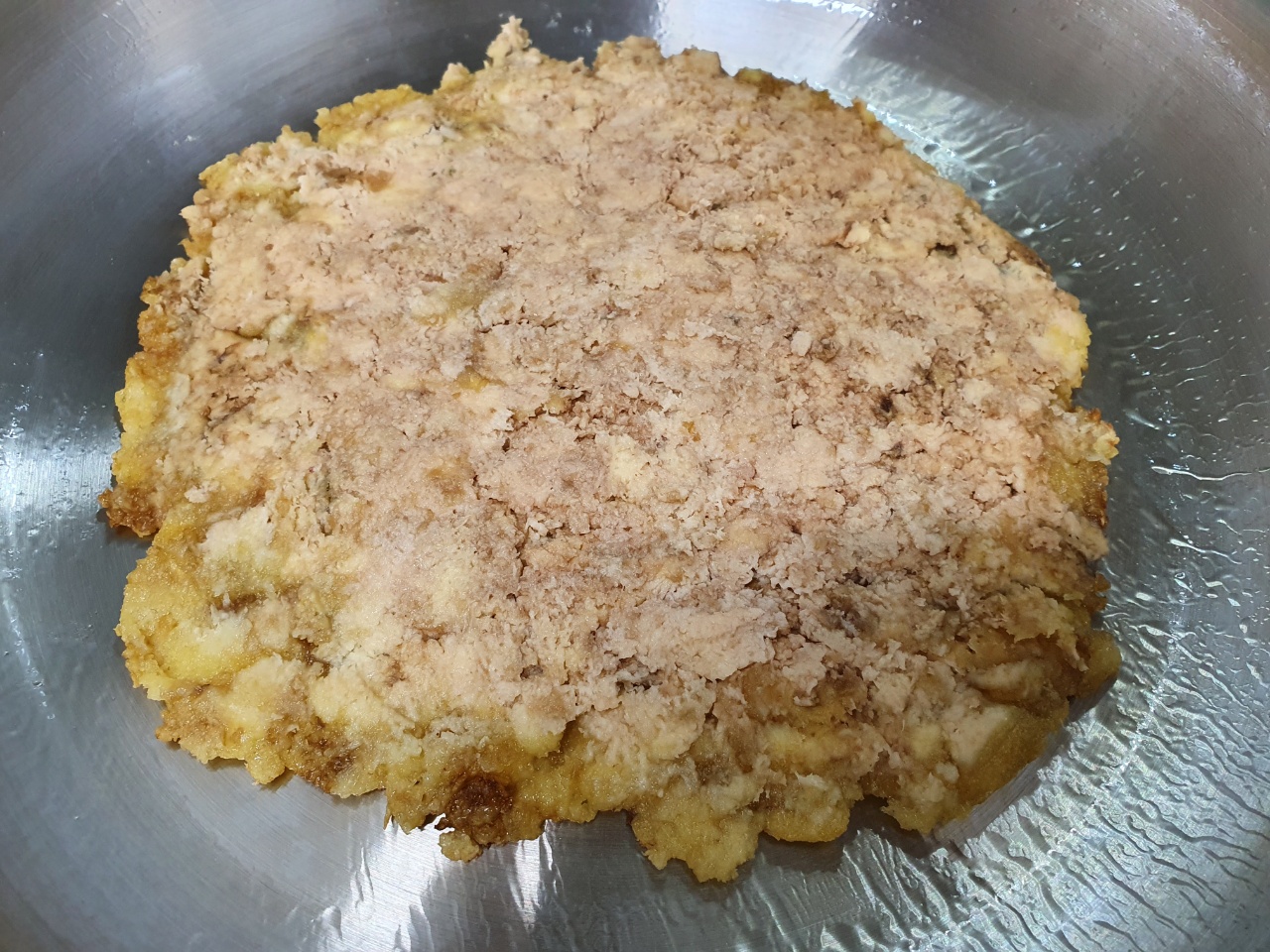 그리고 후회했습니다. 먼저 잘 문친 후에 올렸어야 하는 건데... 그래도 전분이 익으면서 점성이 생겨서 모양 잡기는 어렵지 않습니다. 다만 힘이 약해서 뒤집기는 좀 쉽지 않습니다.
