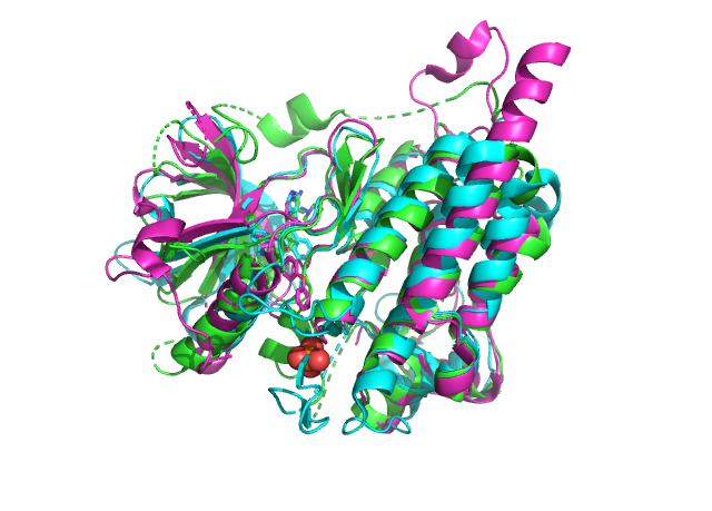 위 그림에서 kinase 도메인의 구조가 서로 유사함을 볼 수 있습니다.