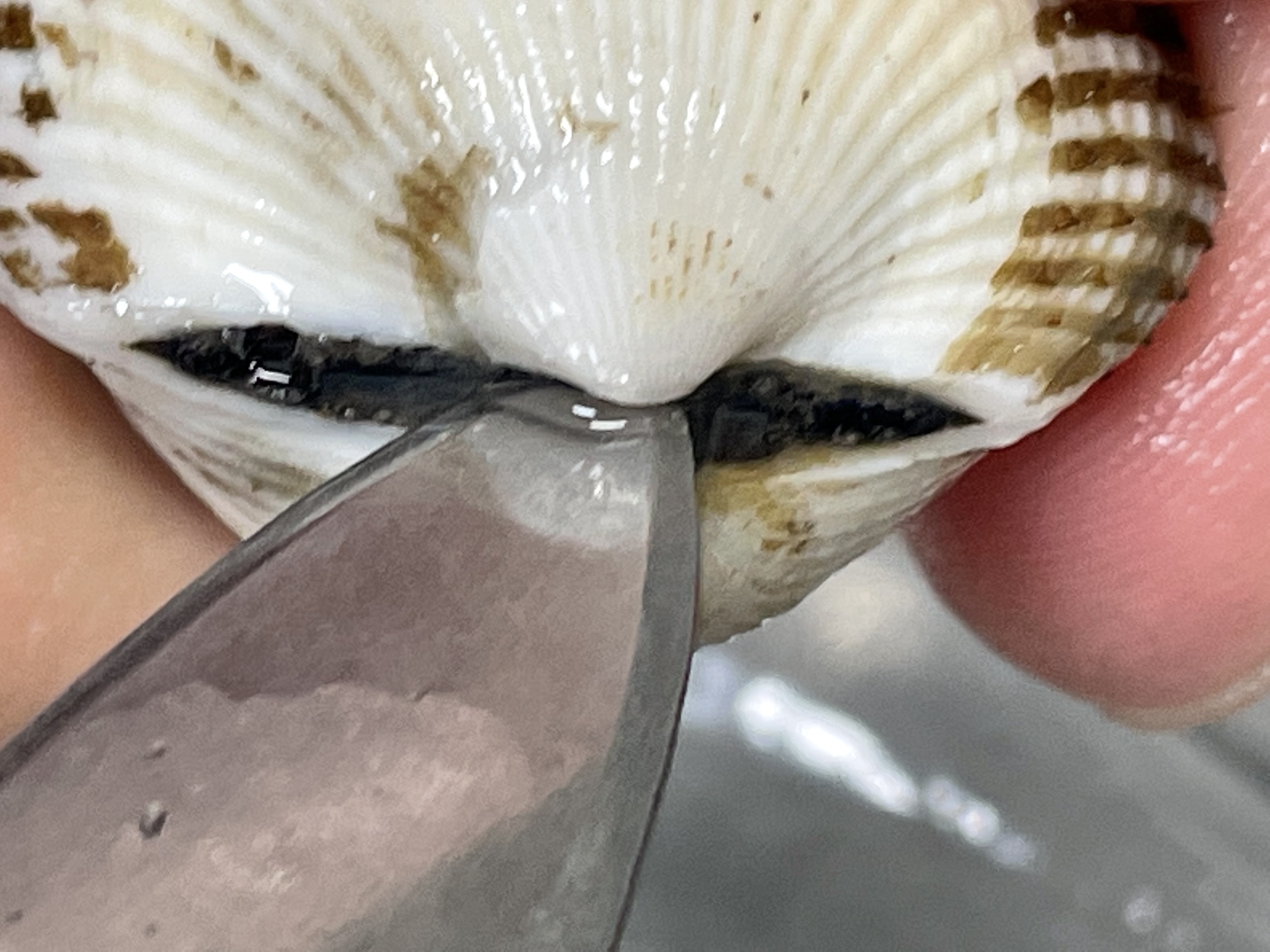 조개 칼로 찌르고 살짝 돌려주면 쉽게 깔 수 있습니다. 아마도 마트에 가면 팔 겁니다.