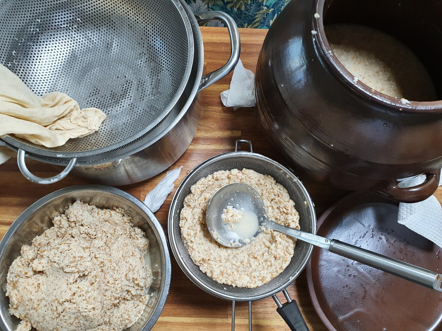 술 거르는 건 피곤하고 손이 많이 갑니다. 처음 할 때는 3시간 정도 걸렸던 것 같습니다.