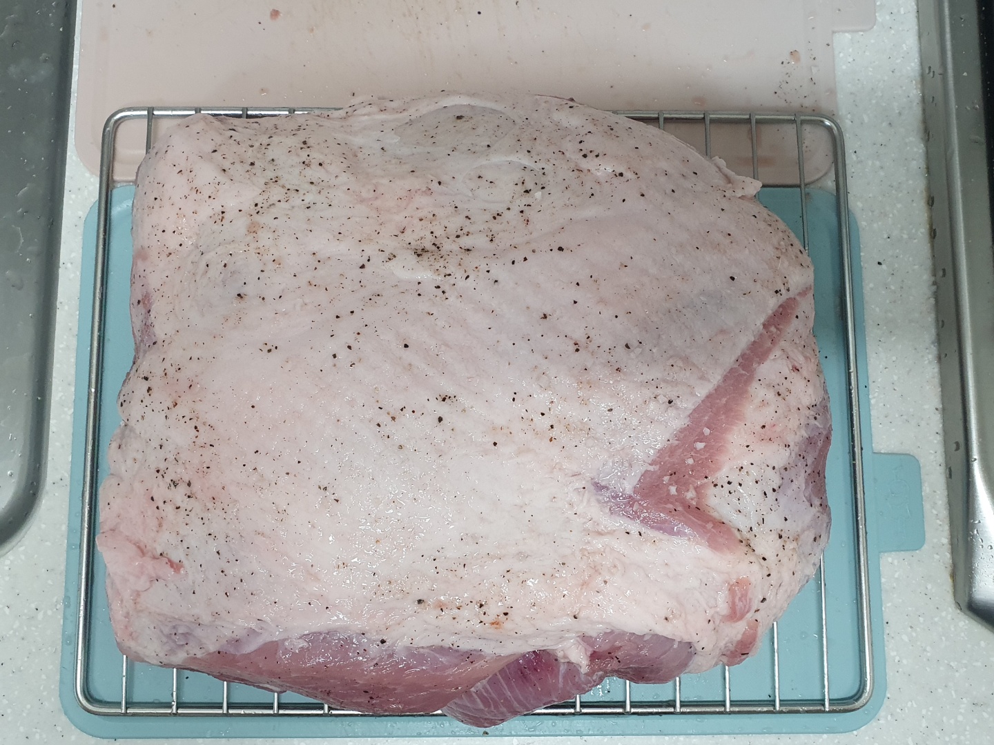 돼지고기는 앞다리살을 사용했습니다. 앞다리살 3kg인데 2만 원 초반대였습니다. 뒷다리살은 6kg에 2만 원대인데, 6kg는 도저히 오븐에 안 들어갈 것 같고, 냉장고에 자리도 없어서 앞다리살을 샀습니다. 통돼지 바비큐를 생각하면 특정 부위만 사용해야 하는 것은 아닌 것 같습니다. 그래도 부위마다 맛 차이가 있긴 하겠죠.