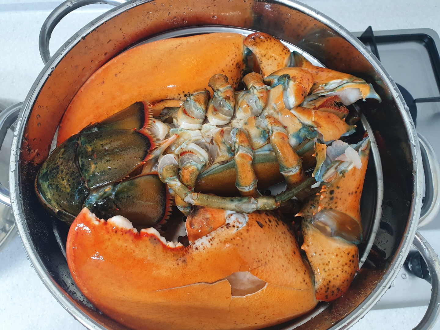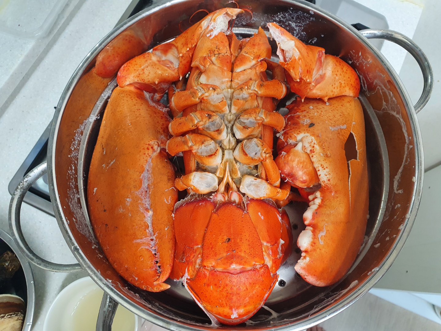 랍스터 찐 물에 그냥 삶은 게 후회되네요. 깨끗한 물에 삶았으면 물도 마셨을 텐데...