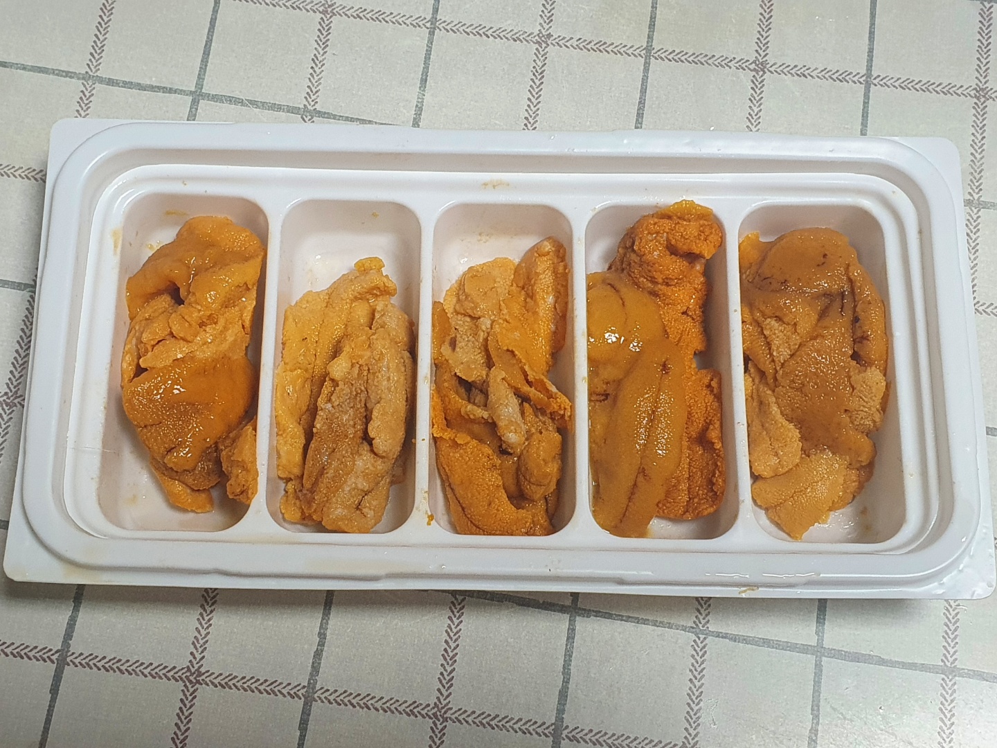 성게알 처음 먹어보는 거 같은데 (동해안에서 생으로 바로 까서 한번 먹어봤지만, 정신이 없어서 패스... 1마리 구매 교섭해주신 선배님 죄송합니다...) 독특한 맛과 향이 좋네요. 비린내가 좀 있어서 생으로 먹기보단 미역국 끓여먹는 게 나을 것 같습니다.