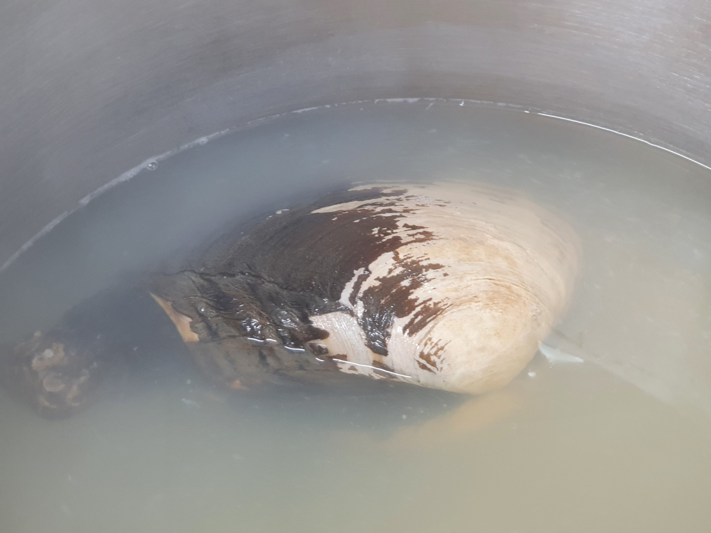 왕우럭조개 매우 컸습니다. 사진으로 보면 크기 실감이 안 가네요. 껍데기 가로 14cm입니다.