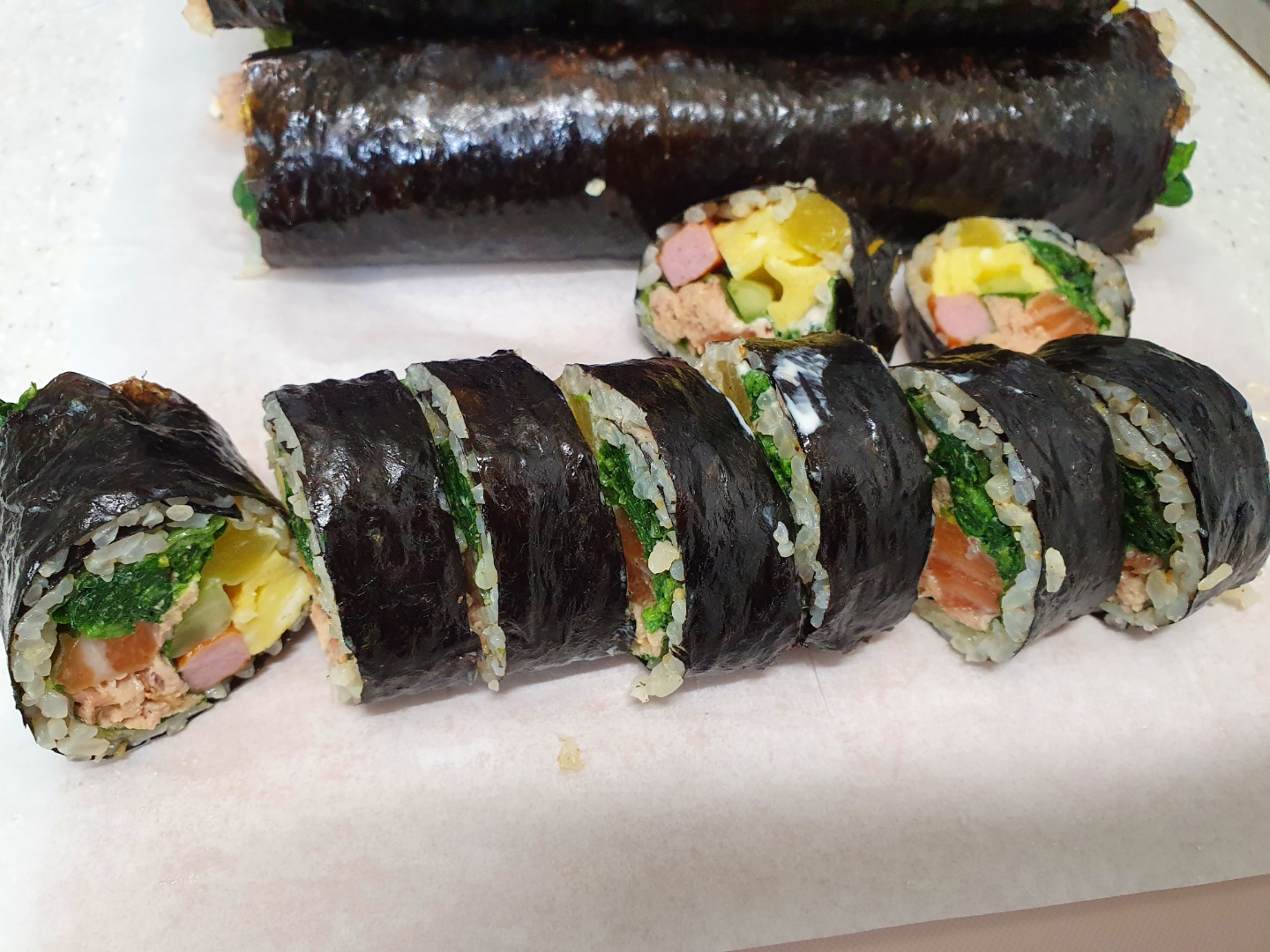 김밥은 귀한 음식이었습니다. 소풍 때나, 운동회날 전날에 재료를 준비하고 새벽부터 일어나서 싸야하는 힘든 요리였습니다. 그리고 IMF가 터지고 김밥천국이 생기고 1000원짜리 김밥이 등장하면서 그냥 아무때나 먹을 수 있는 음식이 되었습니다. 저도 참 좋아하는데... 하지만 요즘엔 죄다 가격이 올라서 기본 2천원이 된거 같네요. 이동네는 김밥 한줄이 3~4천원이라서 저는 그냥 제가 싸먹습니다. 김밥 맛있는 곳도 안보이고...