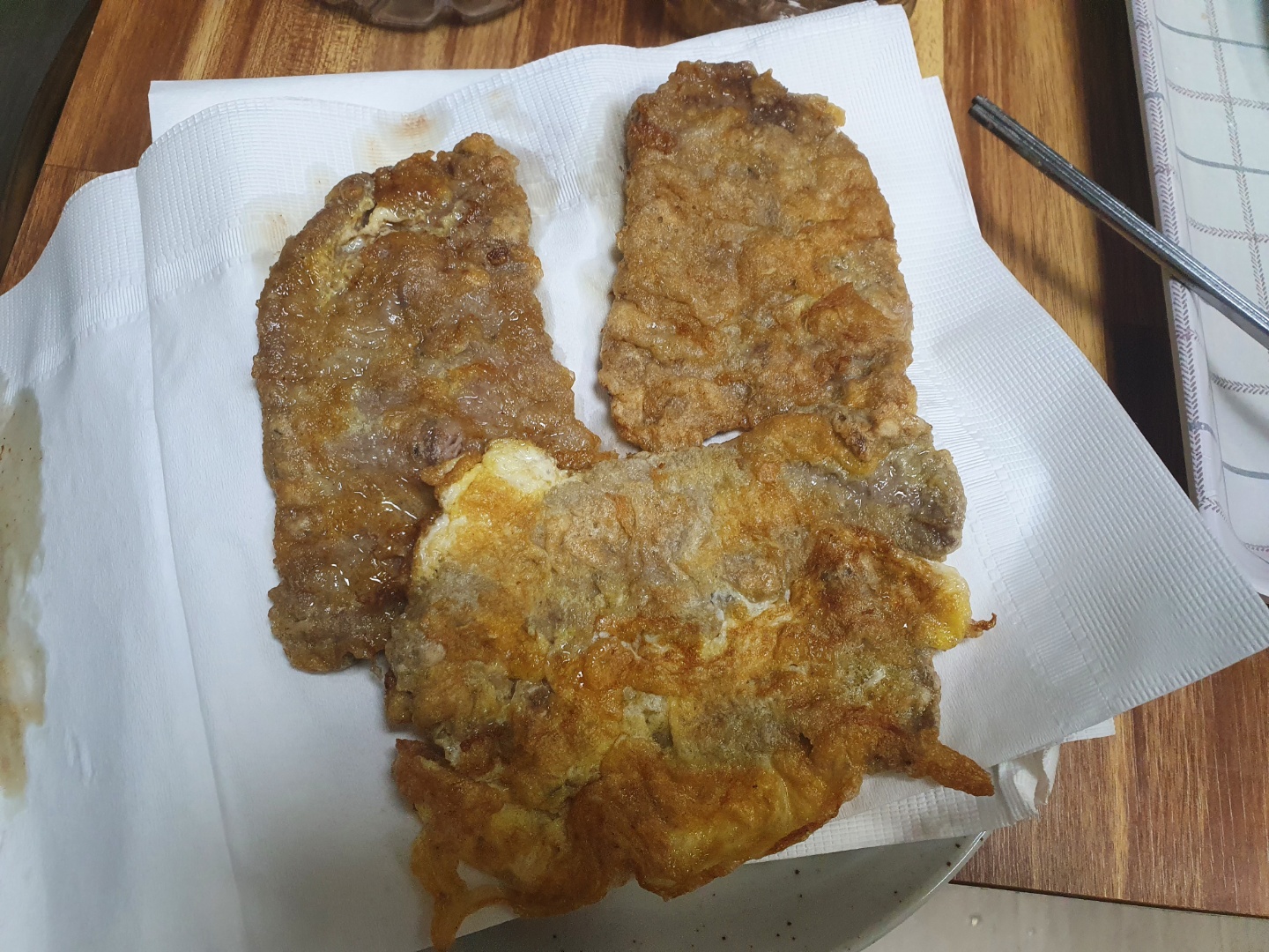 다 익으면 해동지나 키친타월에 올려서 기름을 흡수시킵니다.
