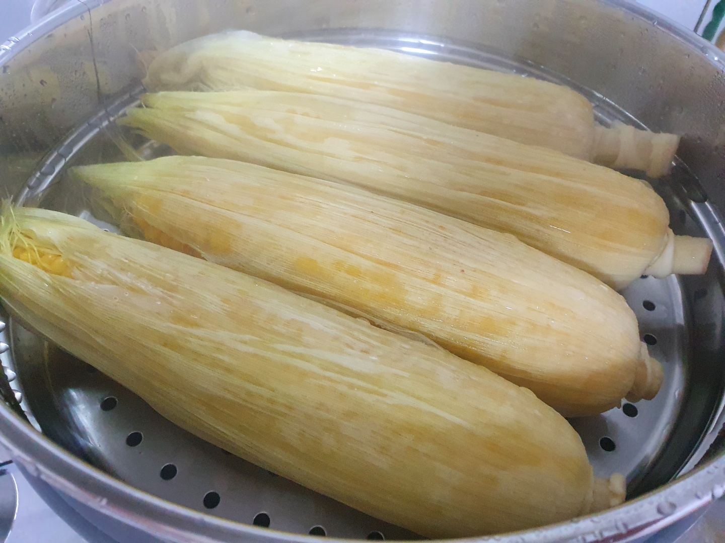 초당옥수수는 날것으로 먹어도 맛있습니다. 2개는 날것으로, 4개는 찌고, 4개는 구워서 직장 가져가서 (스텝들이 맛있게) 먹었습니다.