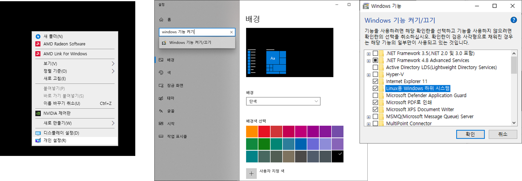 -> Linux용 windows 하위 시스템 선택 -> 확인